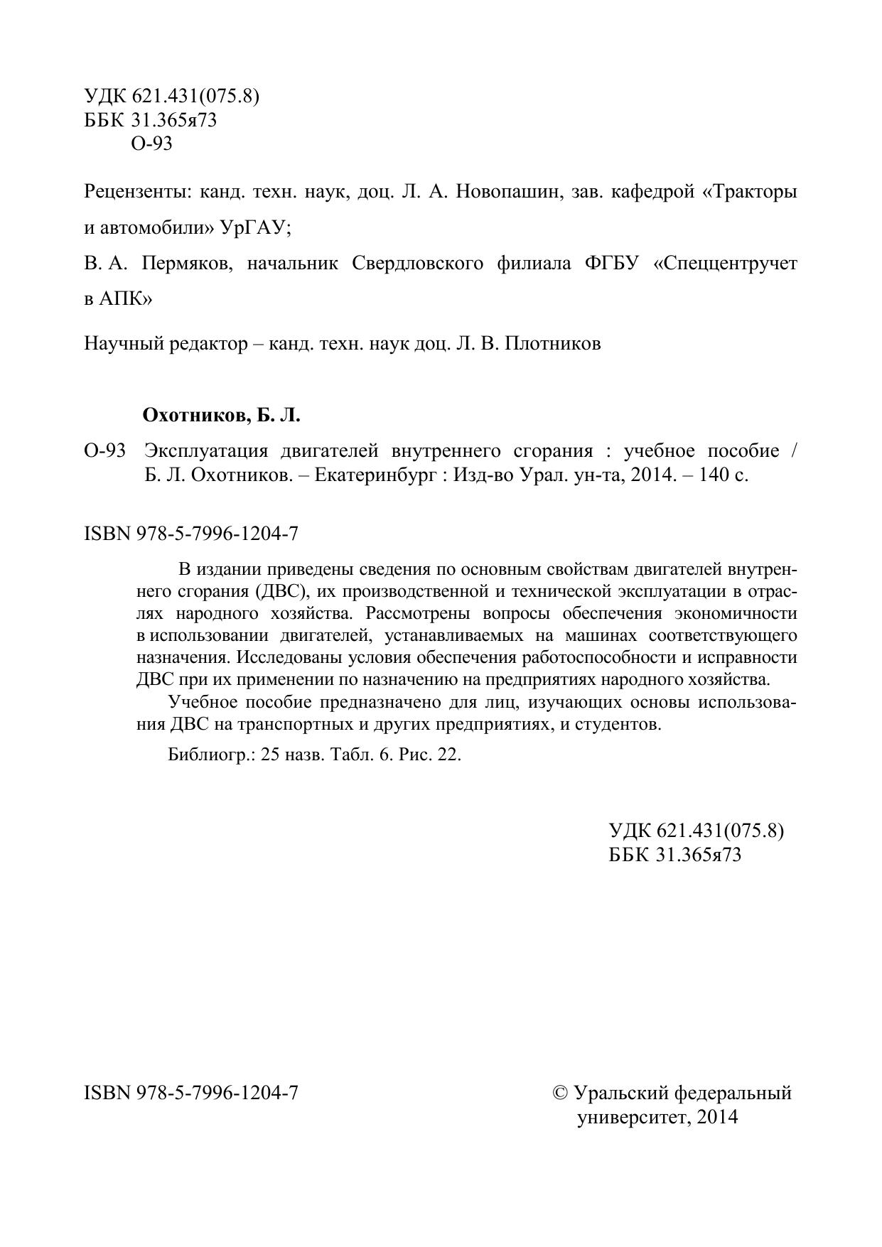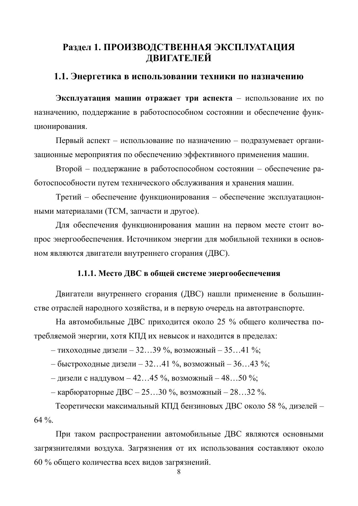 В издании приведены сведения по основным свойствам двигателей внутреннего сгорания (ДВС), их производственной и технической эксплуатации в отраслях народного хозяйства. Рассмотрены вопросы обеспечения экономичности в использовании двигателей, устанавливаемых на машинах соответствующего назначения. Исследованы условия обеспечения работоспособности и исправности ДВС при их применении по назначению на предприятиях народного хозяйства. Учебное пособие предназначено для лиц, изучающих основы использования ДВС на транспортных и других предприятиях, и студентов.