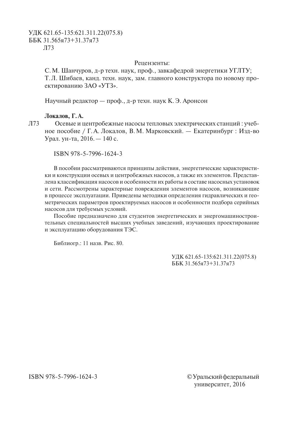 Осевые и центробежные насосы тепловых электрических станций: учебное пособие