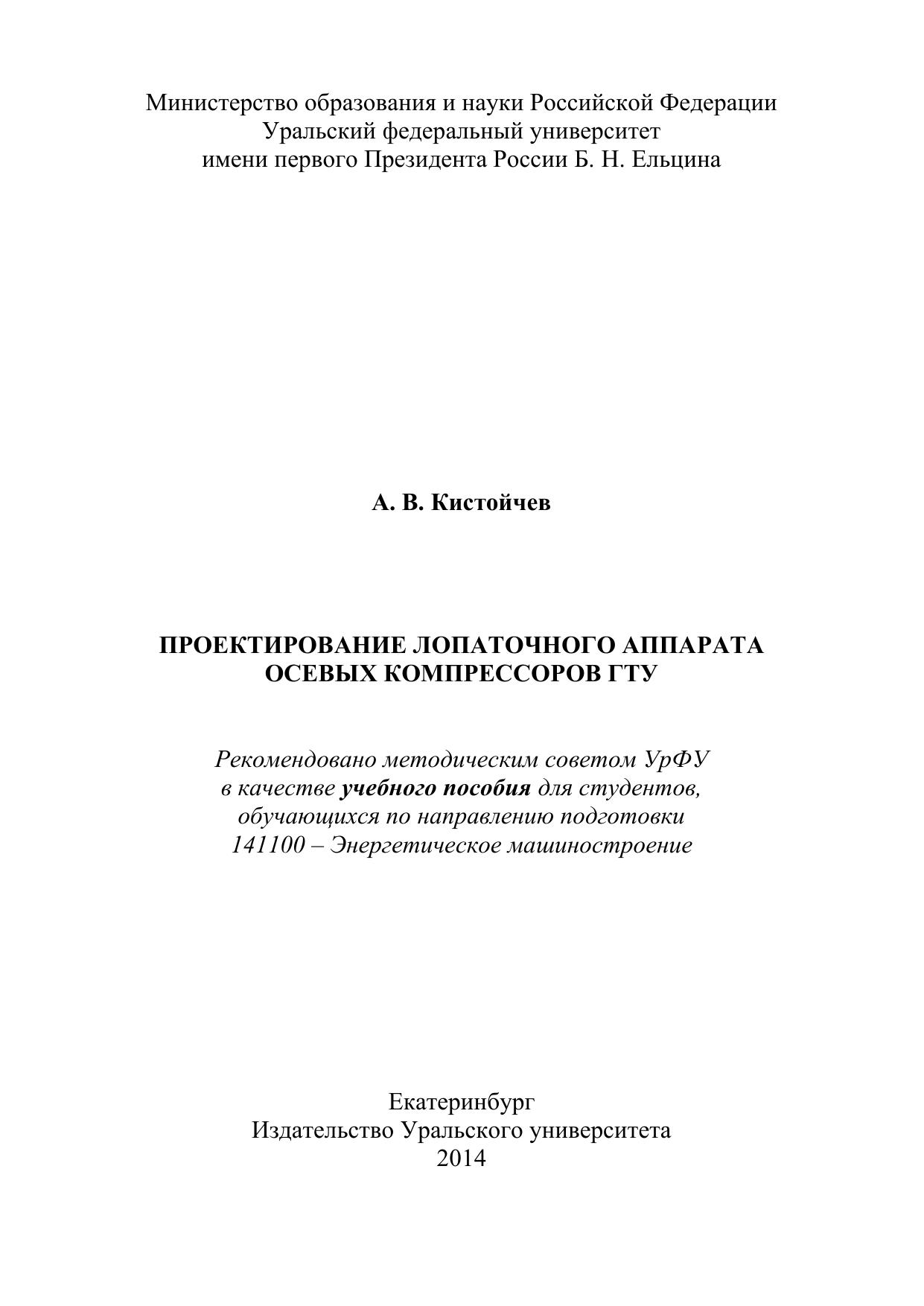 Проектирование лопаточного аппарата осевых компрессоров ГТУ: учебное пособие