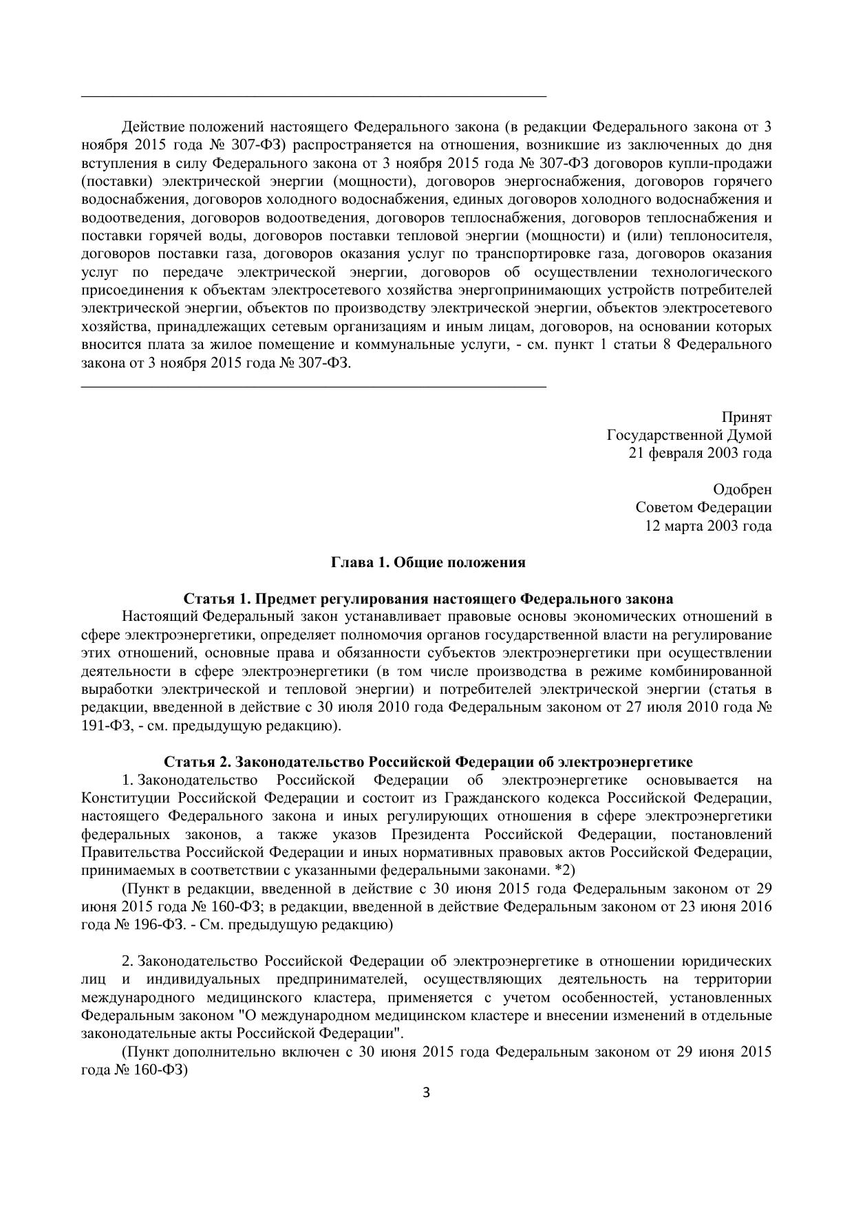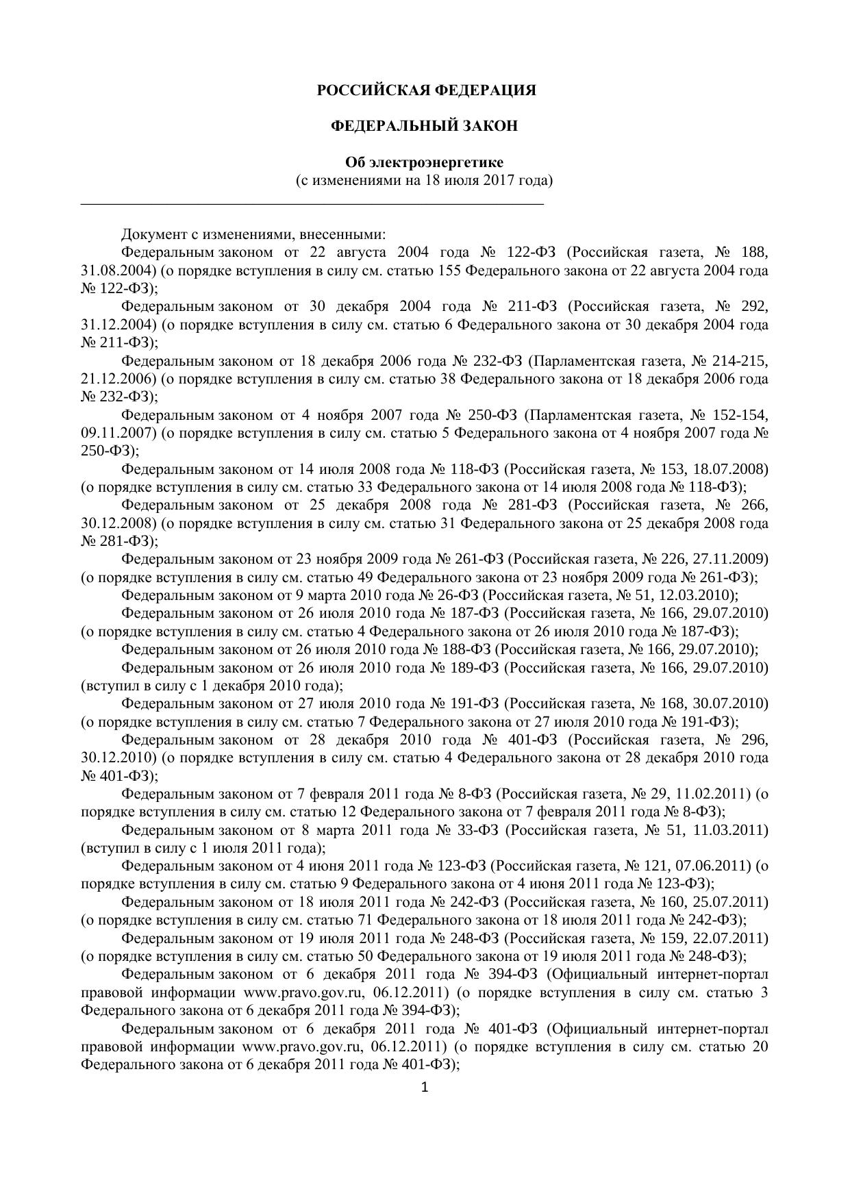 Федеральный закон об электроэнергетике от 26 марта 2003 года