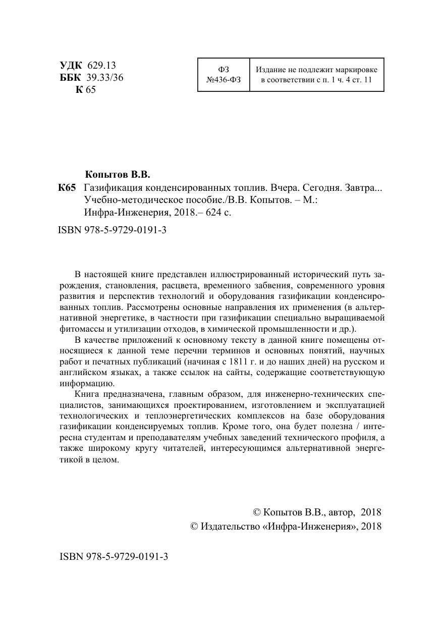 Книга предназначена, главным образом, для инженерно-технических специалистов, занимающихся проектированием, изготовлением и эксплуатацией технологических и теплоэнергетических комплексов на базе оборудования газификации конденсируемых топлив. Кроме того, она будет полезна / интересна студентам и преподавателям учебных заведений технического профиля, а также широкому кругу читателей, интересующимся альтернативной энергетикой в целом.