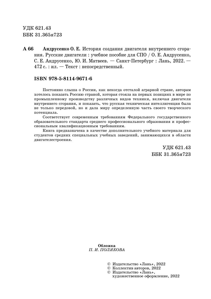 Постоянно слыша о России, как некогда отсталой аграрной стране, авторам хотелось показать Россию страной, которая стояла на первых позициях в мире по промышленному производству различных видов техники, включая двигатели внутреннего сгорания, и показать, что русская техническая интеллигенция была не только передовой, но и дала миру определенную часть своего творческого потенциала. Книга предназначена в качестве дополнительного учебного материала для студентов средних специальных учебных заведений, занимающихся в области двигателестроения.