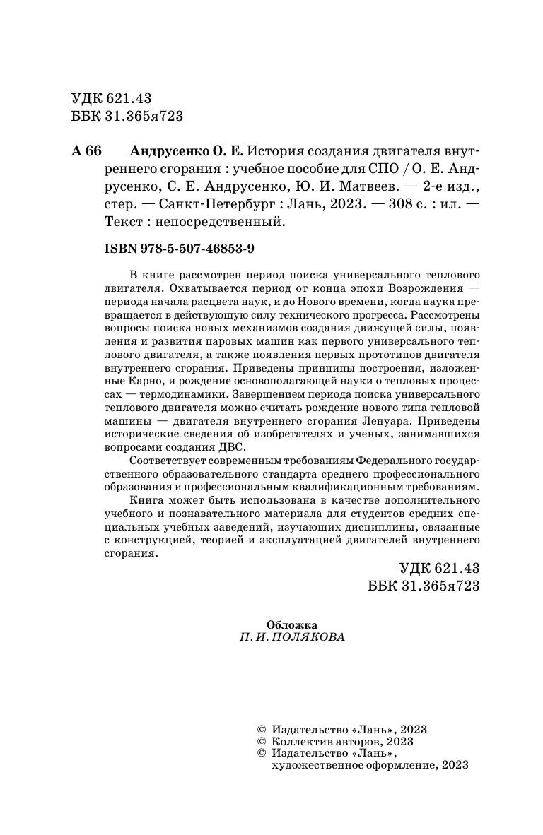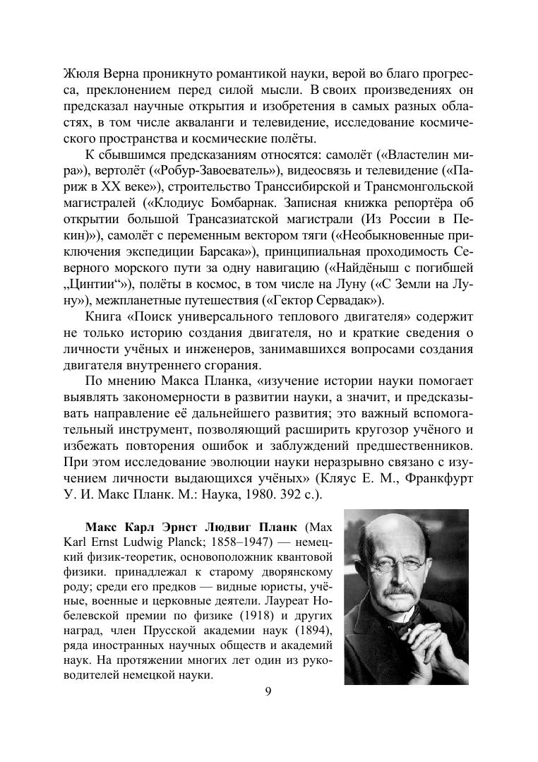 В книге рассмотрен период поиска универсального теплового двигателя. Охватывается период от конца эпохи Возрождения — периода начала расцвета наук, и до Нового времени, когда наука превращается в действующую силу технического прогресса. Рассмотрены вопросы поиска новых механизмов создания движущей силы, появления и развития паровых машин как первого универсального теплового двигателя, а также появления первых прототипов двигателя внутреннего сгорания. Приведены принципы построения, изложенные Карно, и рождение основополагающей науки о тепловых процессах — термодинамики. Завершением периода поиска универсального теплового двигателя можно считать рождение нового типа тепловой машины — двигателя внутреннего сгорания Ленуара. Приведены исторические сведения об изобретателях и ученых, занимавшихся вопросами создания ДВС. Соответствует современным требованиям Федерального государственного образовательного стандарта среднего профессионального образования и профессиональным квалификационным требованиям. Книга может быть использована в качестве дополнительного учебного и познавательного материала для студентов средних специальных учебных заведений, изучающих дисциплины, связанные с конструкцией, теорией и эксплуатацией двигателей внутреннего сгорания.