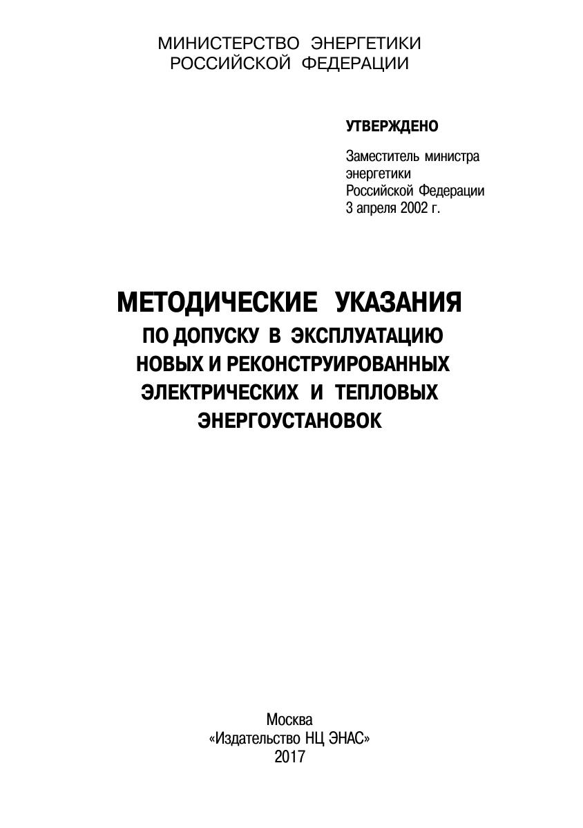 Методические указания по допуску в эксплуатацию новых и реконструированных электрических и тепловых энергоустановок