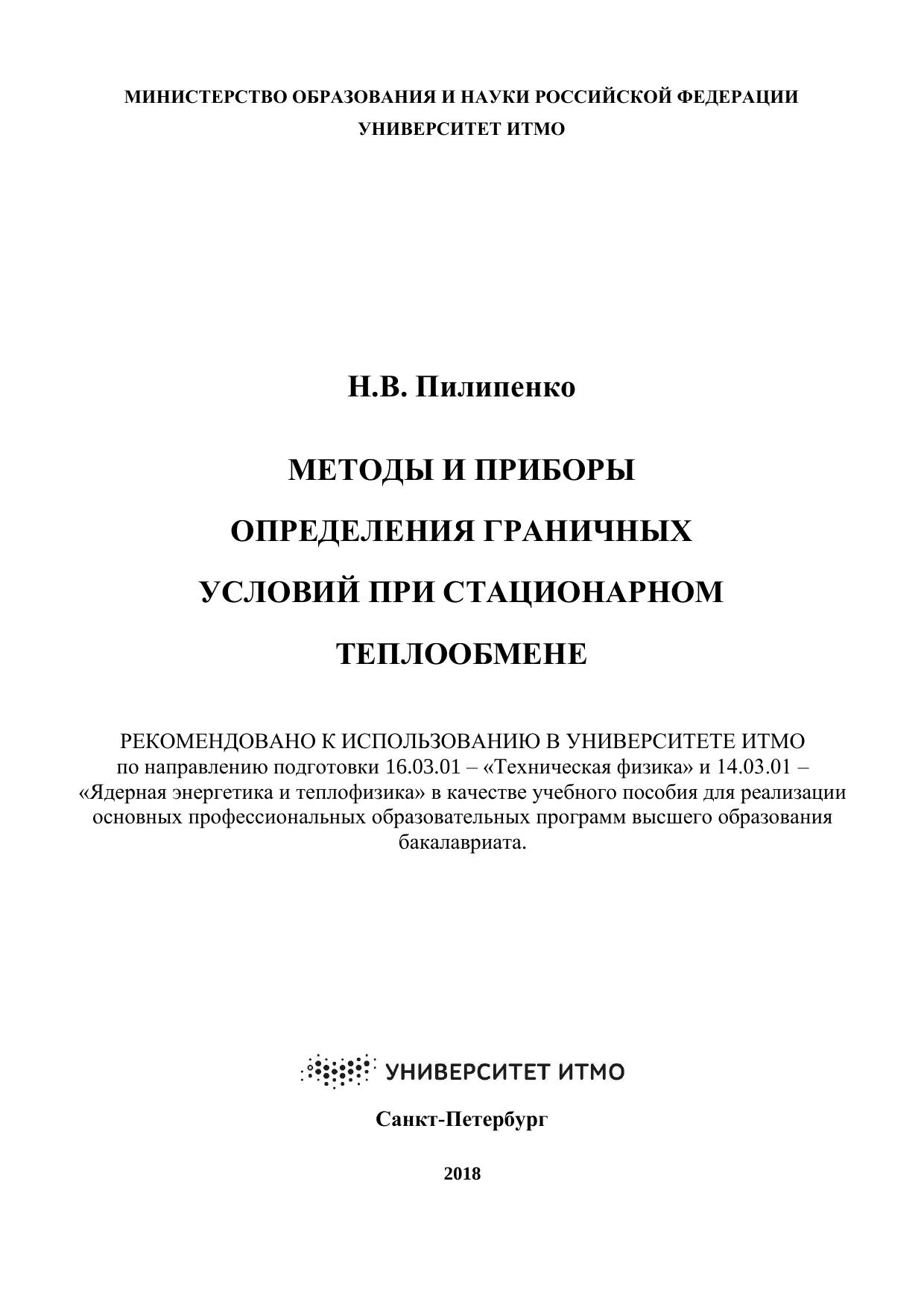 Учебное пособие разработано в соответствии с программой курса «Техника теплофизического эксперимента» Федерального образовательного стандарта Министерства высшего образования и науки РФ для бакалавров по направлениям подготовки 16.03.01– «Техническая физика» и 14.03.01 – «Ядерная энергетика и теплофизика».