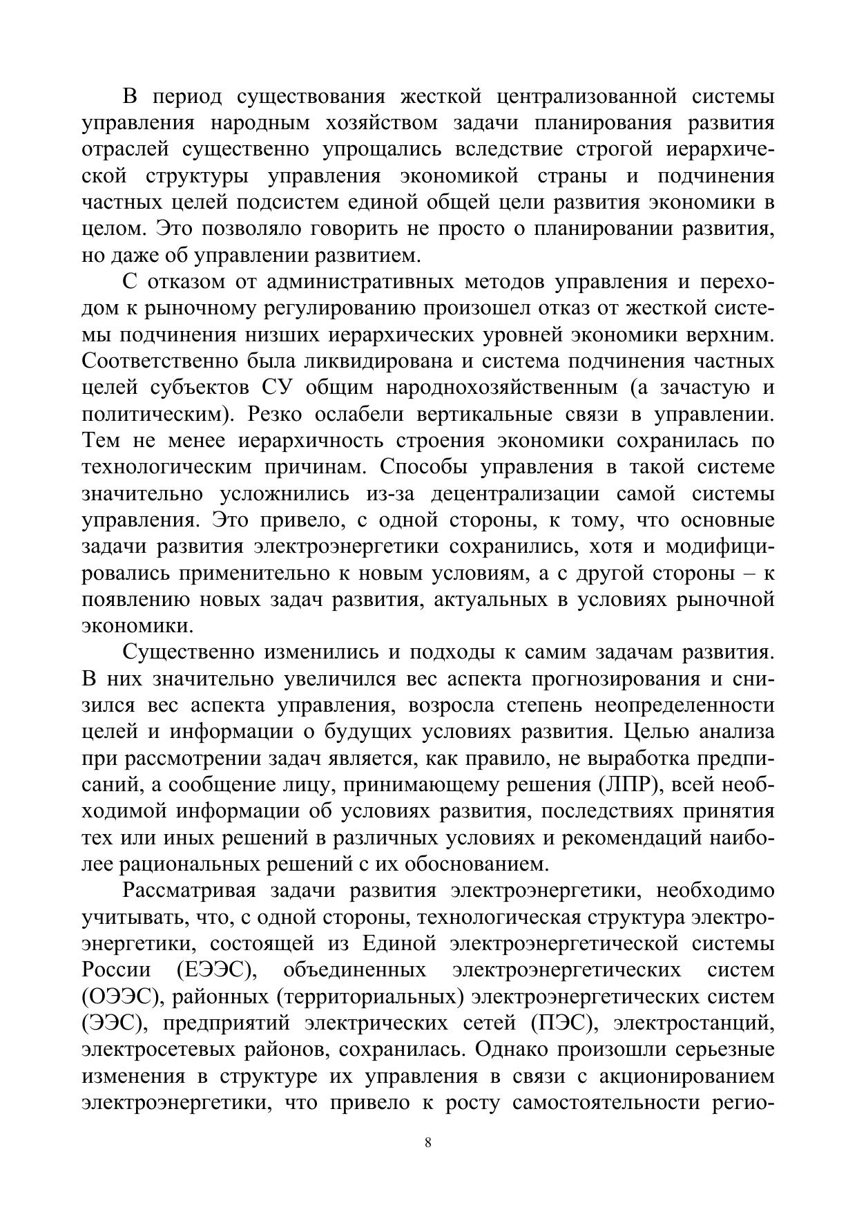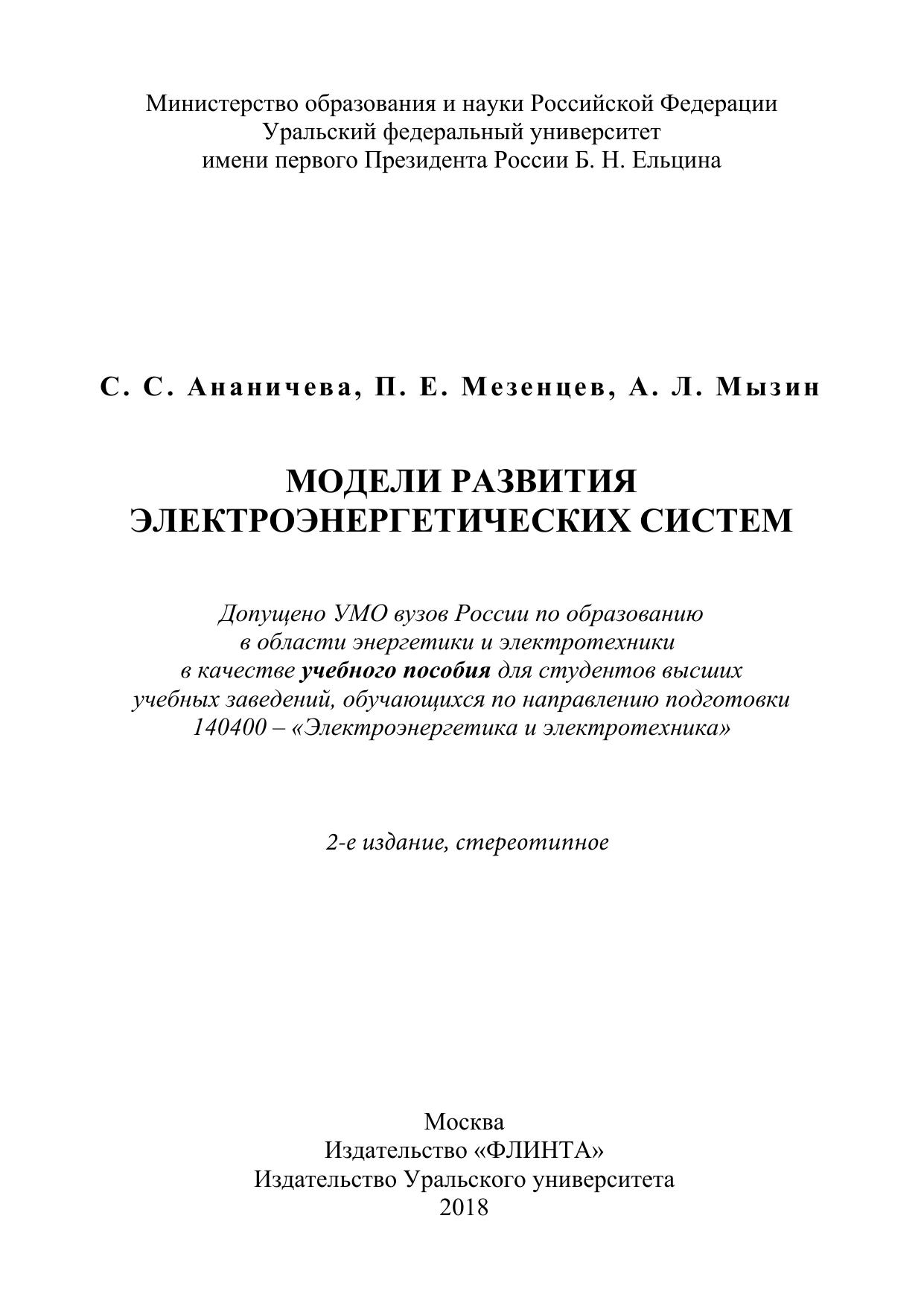 Учебное пособие предназначено для изучения дисциплины «Модели оп-тимизации развития электроэнергетических систем», кроме того, может быть использовано при изучении отдельных разделов спецкурсов и дисциплины «Электроэнергетические системы и сети. Наряду с изложением традиционных методов решения задач развития ЭЭС в предлагаемом учебном пособии рассмотрены новые подходы, нацеленные на решение задач развития в условиях перехода к рыночной экономике. К ним относятся формирование критериев в задачах управления и развития электроэнергетики с учетом многосубъектности, методы технико-экономических расчетов, модели экологических критериев, многокритериальный анализ в условиях неопределенности и другие.