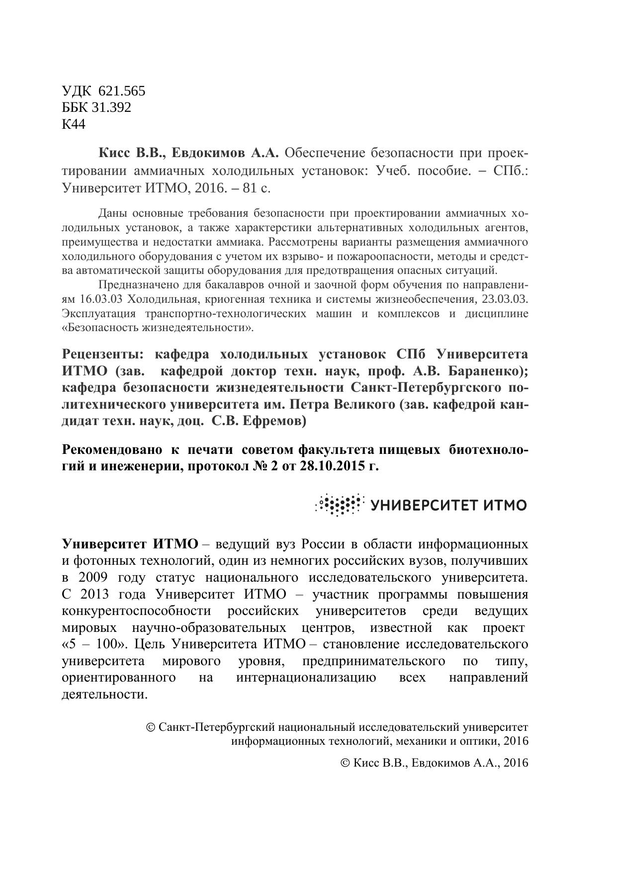 Обеспечение безопасности при проектировании аммиачных холодильных установок: учебное пособие