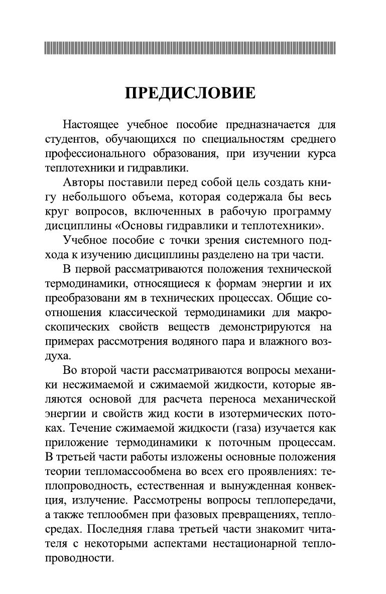 Учебное пособие содержит основные положения термодинамики, механики жидкости, тепломассообмена. Соответствует современным требованиям Федерального государственного образовательного стандарта среднего профессионального образования и профессиональным квалификационным требованиям. Учебное пособие предназначено для студентов, обучающихся по специальностям среднего профессионального образования, при изучении курса теплотехники и гидравлики.