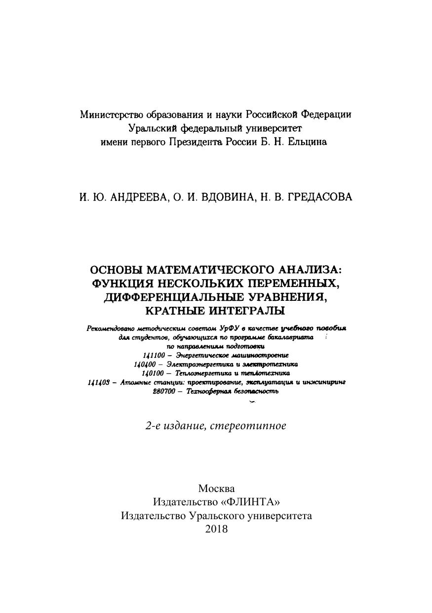 Основы математического анализа: функция нескольких переменнных, дифференциальные уравнения, кратные интегралы
