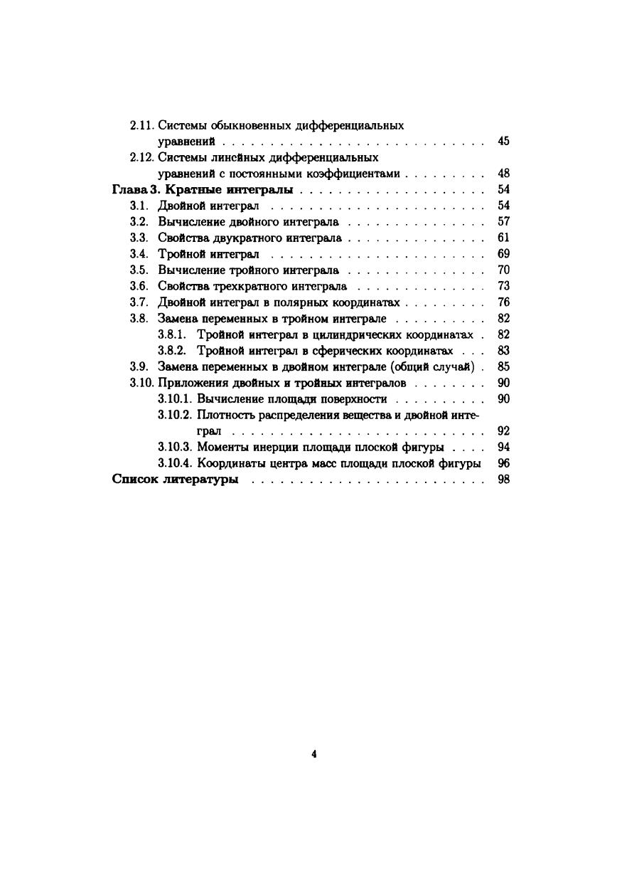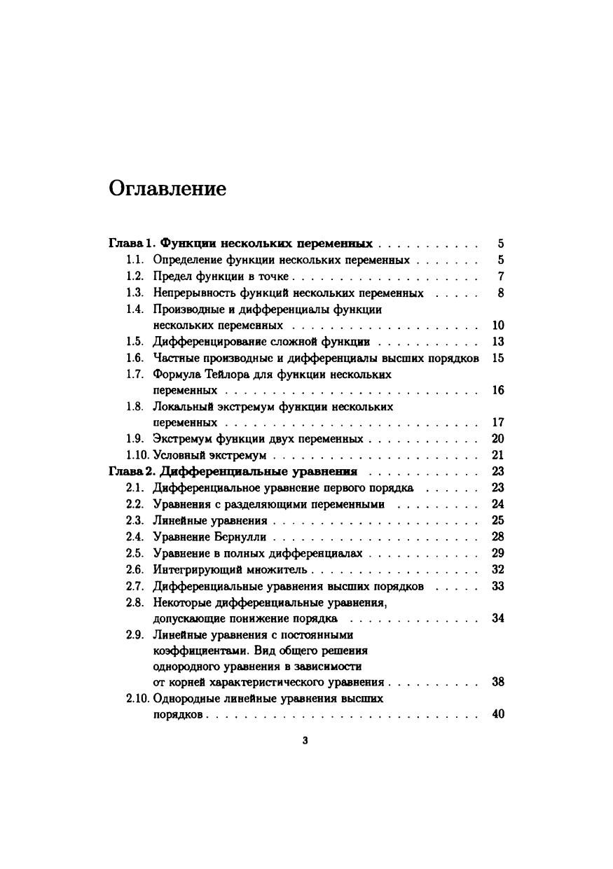 Учебное пособие состоит из трех глав: функции нескольких переменных, дифференциальные уравнения, кратные интегралы. В первой главе вводятся понятия функции нескольких переменных, предела данной функции в точке, непрерывности и дифференцируемости функции. Рассматривается экстремум функции нескольких переменных. Вторая глава посвящена основным типам дифференциальных уравнений 1-го порядка, уравнениям п-го порядка, допускающим понижение степени, а также линейным уравнениям п-го порядка. В третьей главе вводятся понятия двойного и тройного интеграла и приводятся способы их вычисления в различных системах координат. Все указанные выше темы проиллюстрированы примерами. Учебное пособие предназначено для студентов всех специальностей и всех форм обучения, изучающих курс "Математика".