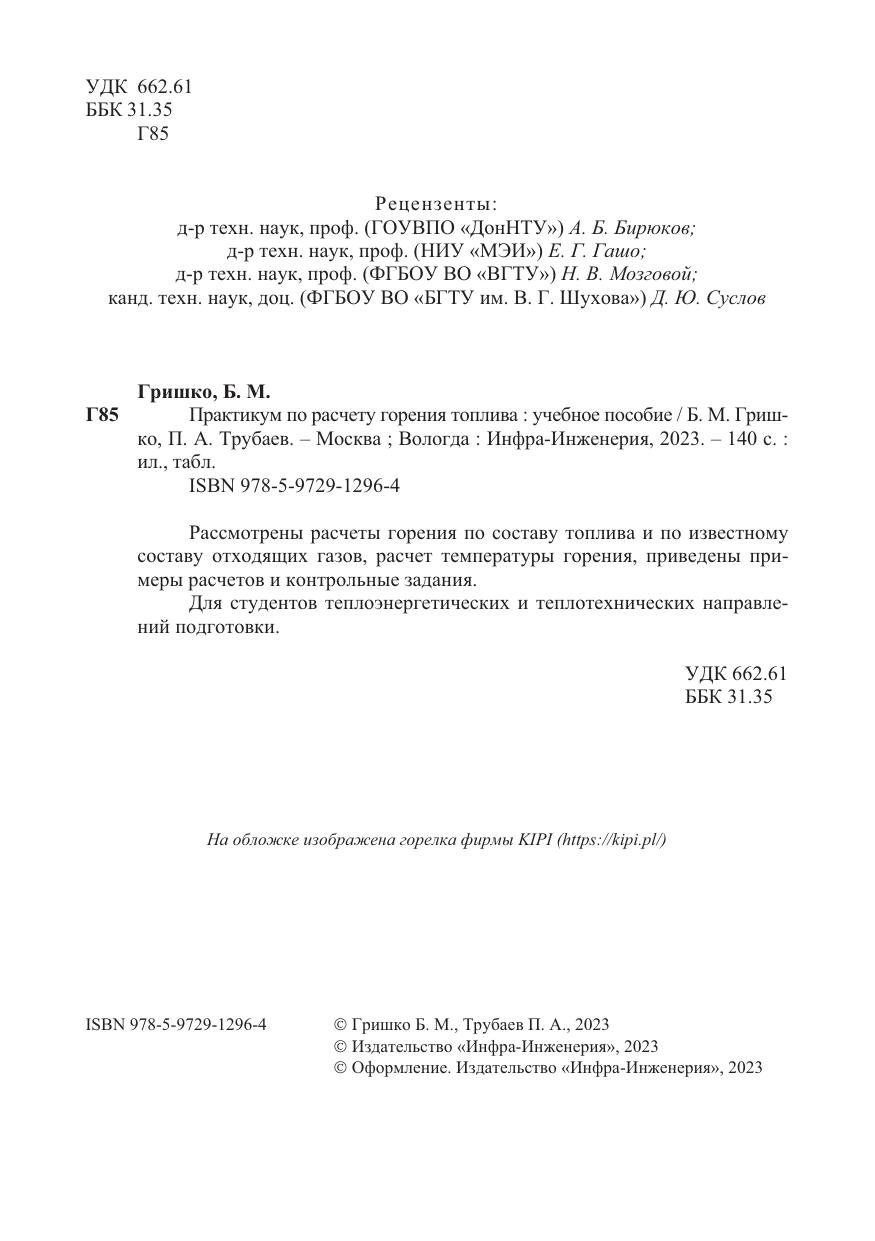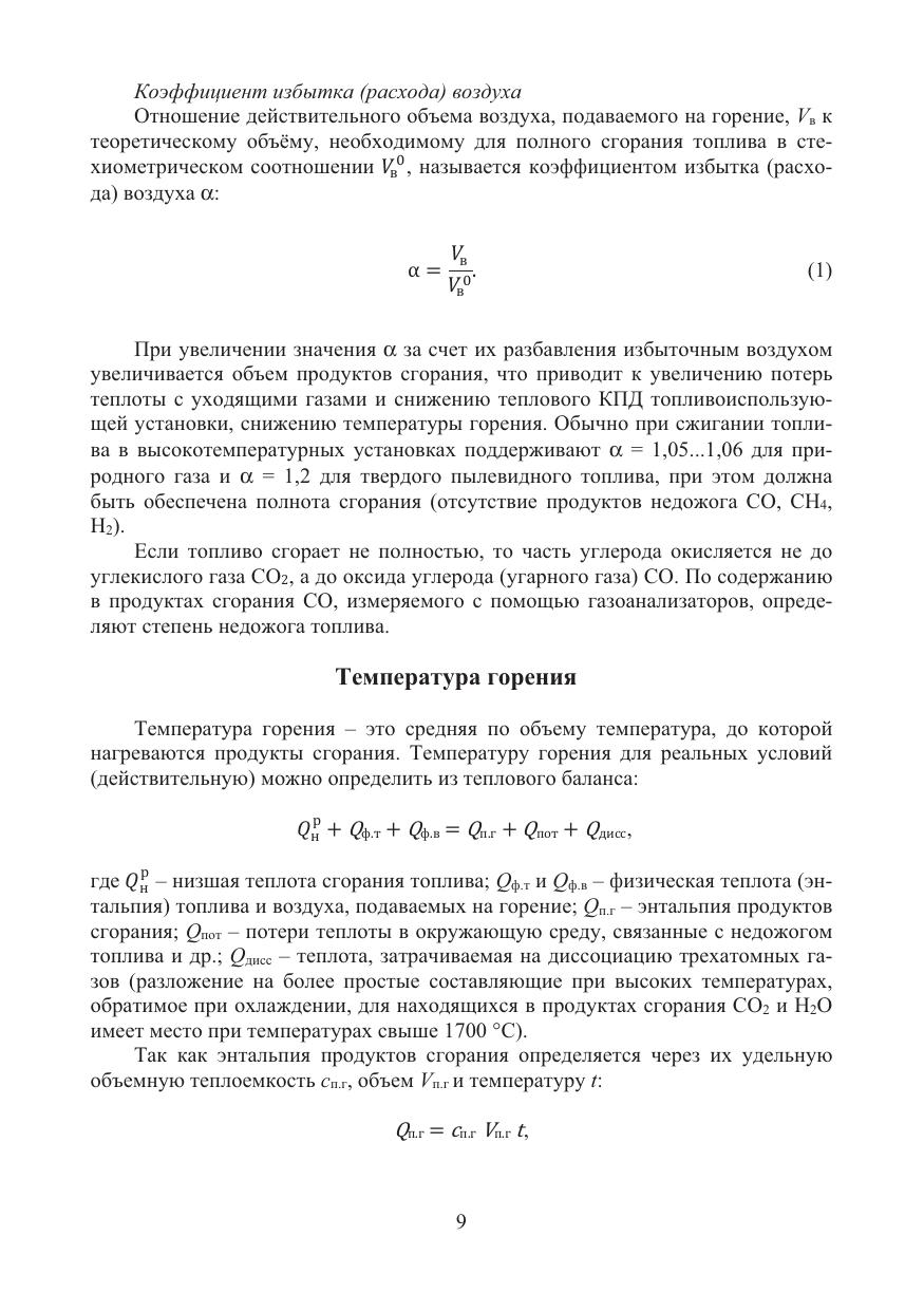 Рассмотрены расчеты горения по составу топлива и по известному составу отходящих газов, расчет температуры горения, приведены примеры расчетов и контрольные задания.