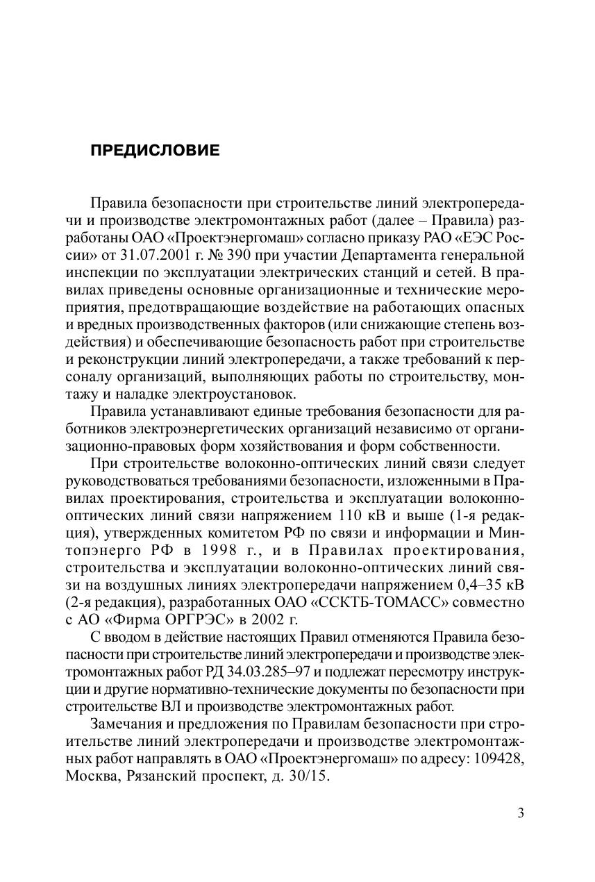В «Правилах безопасности при строительстве линий электропередачи и производстве электромонтажных работ» (далее – Правила) приведены основные организационные и технические мероприятия, предотвращающие воздействие на работающих опасных и вредных производственных факторов (или снижающие степень воздействия) и обеспечивающие безопасность работ при строительстве и реконструкции линий электропередачи, а также требования к персоналу организаций, выполняющих работы по строительству, монтажу и наладке электроустановок. Настоящие правила устанавливают единые требования безопасности для работников электроэнергетических организаций независимо от организационно+правовых форм хозяйствования и форм собственности. Правила предназначены для работников строительных, электромонтажных, наладочных организаций и эксплуатационных предприятий, занятых организацией и производством электромонтажных работ (в том числе сооружением ВЛ, КЛ и подстанций), а также работ по наладке электрооборудования энергетических и промышленных объектов. C вводом в действие настоящих Правил отменяются «Правила безопасности при строительстве линий электропередачи и производстве электромонтажных работ» РД 34.03.285–97 и подлежат пересмотру инструкции и другие нормативно-технические документы по безопасности при строительстве ВЛ и производстве электромонтажных работ.