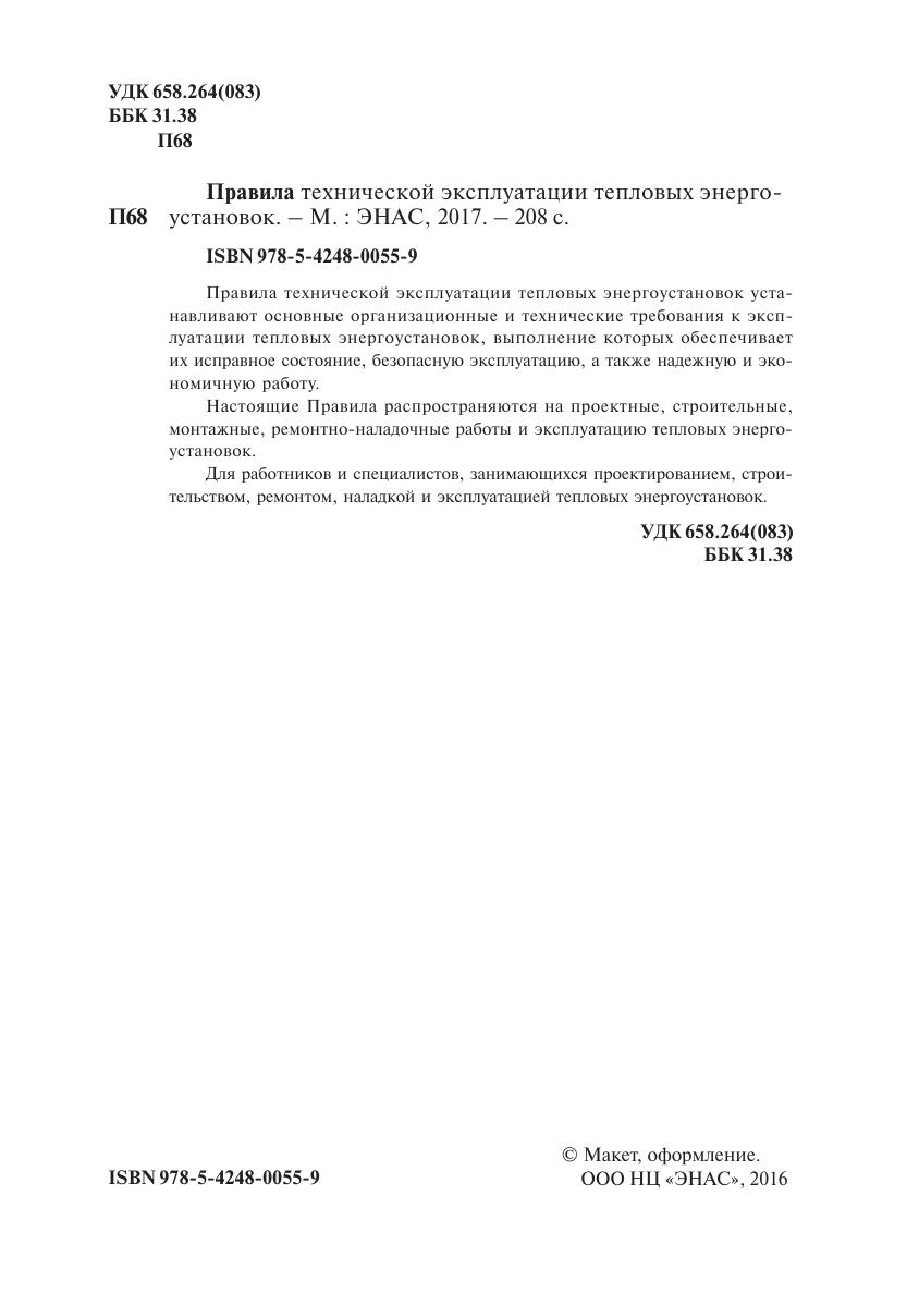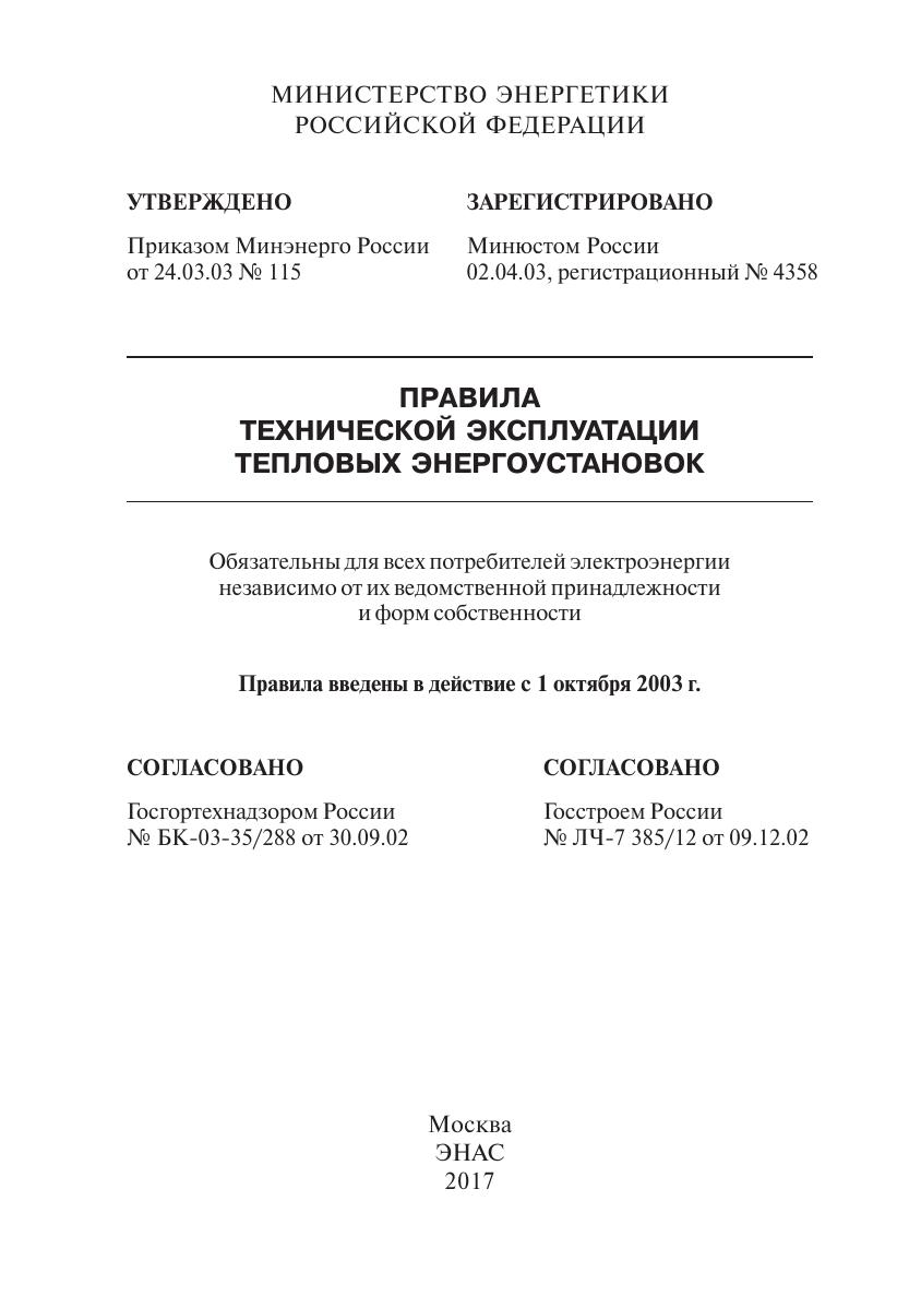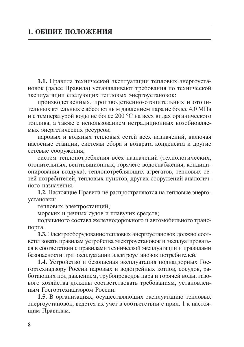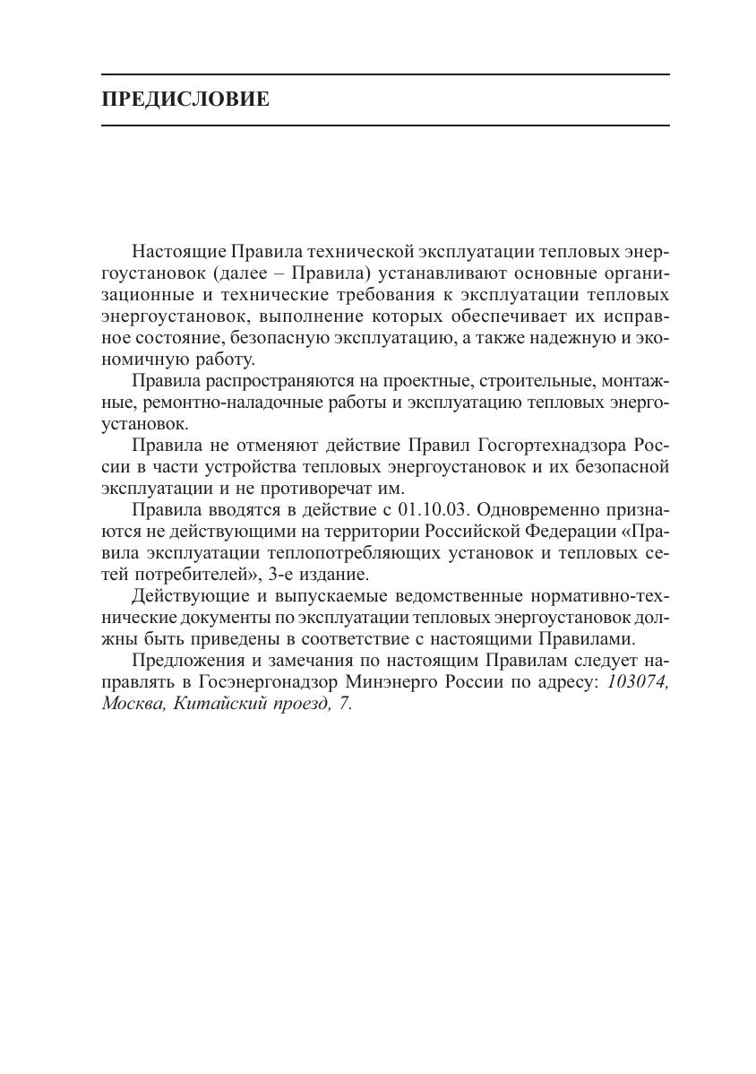 Правила технической эксплуатации тепловых энергоустановок устанавливают основные организационные и технические требования к эксплуатации тепловых энергоустановок, выполнение которых обеспечивает их исправное состояние, безопасную эксплуатацию, а также надежную и экономичную работу. Настоящие Правила распространяются на проектные, строительные, монтажные, ремонтно;наладочные работы и эксплуатацию тепловых энергоустановок. Для работников и специалистов, занимающихся проектированием, строительством, ремонтом, наладкой и эксплуатацией тепловых энергоустановок.