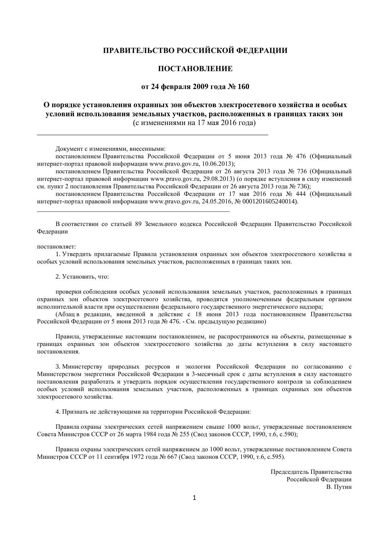 Правила установления охранных зон объектов электросетевого хозяйства и особых условий использования земельных участков, расположенных в границах таких зон (с изменениями на 17 мая 2016 года)