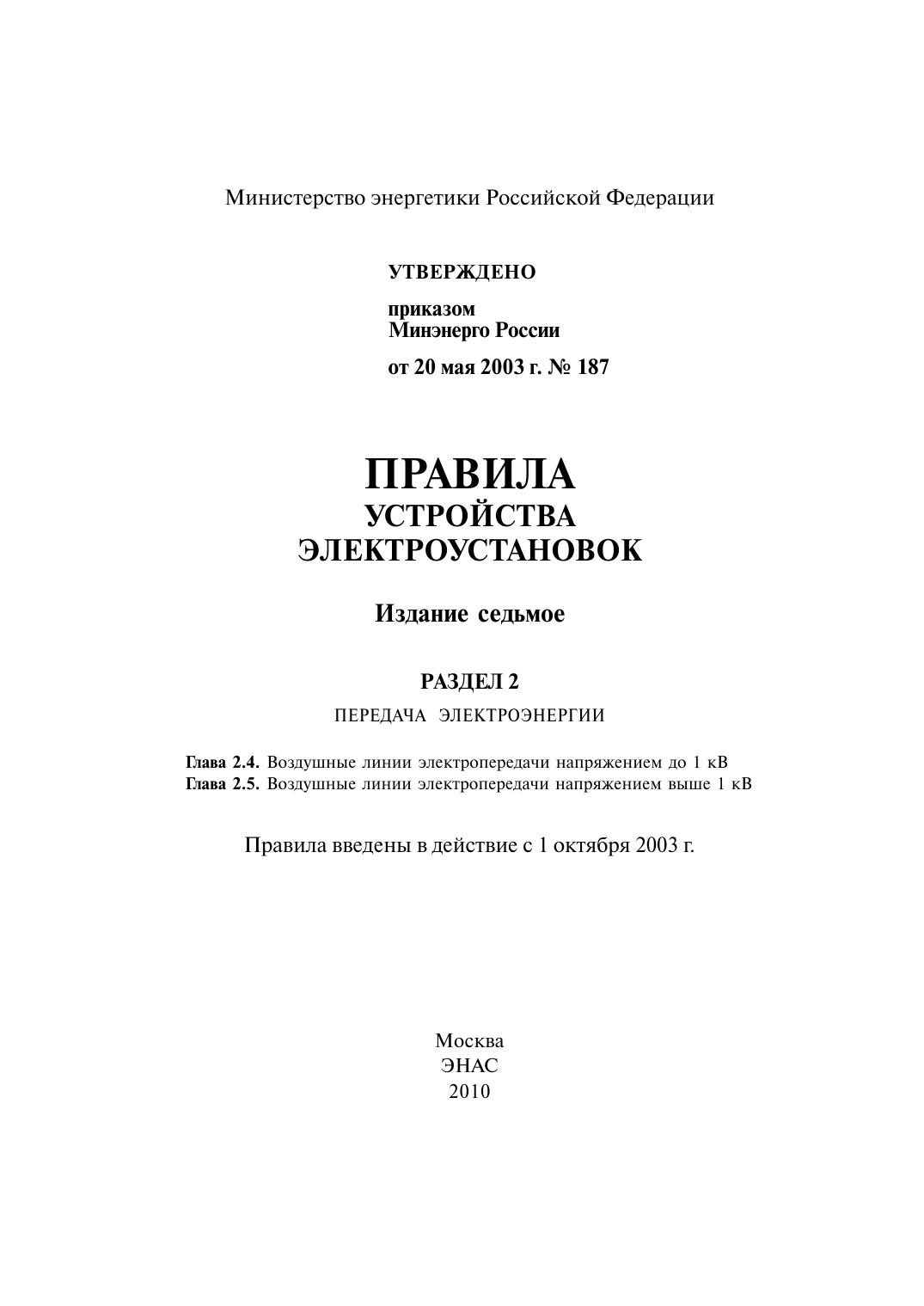 Правила устройства электроустановок. Раздел 2. Передача электроэнергии. Главы 2.4, 2.5