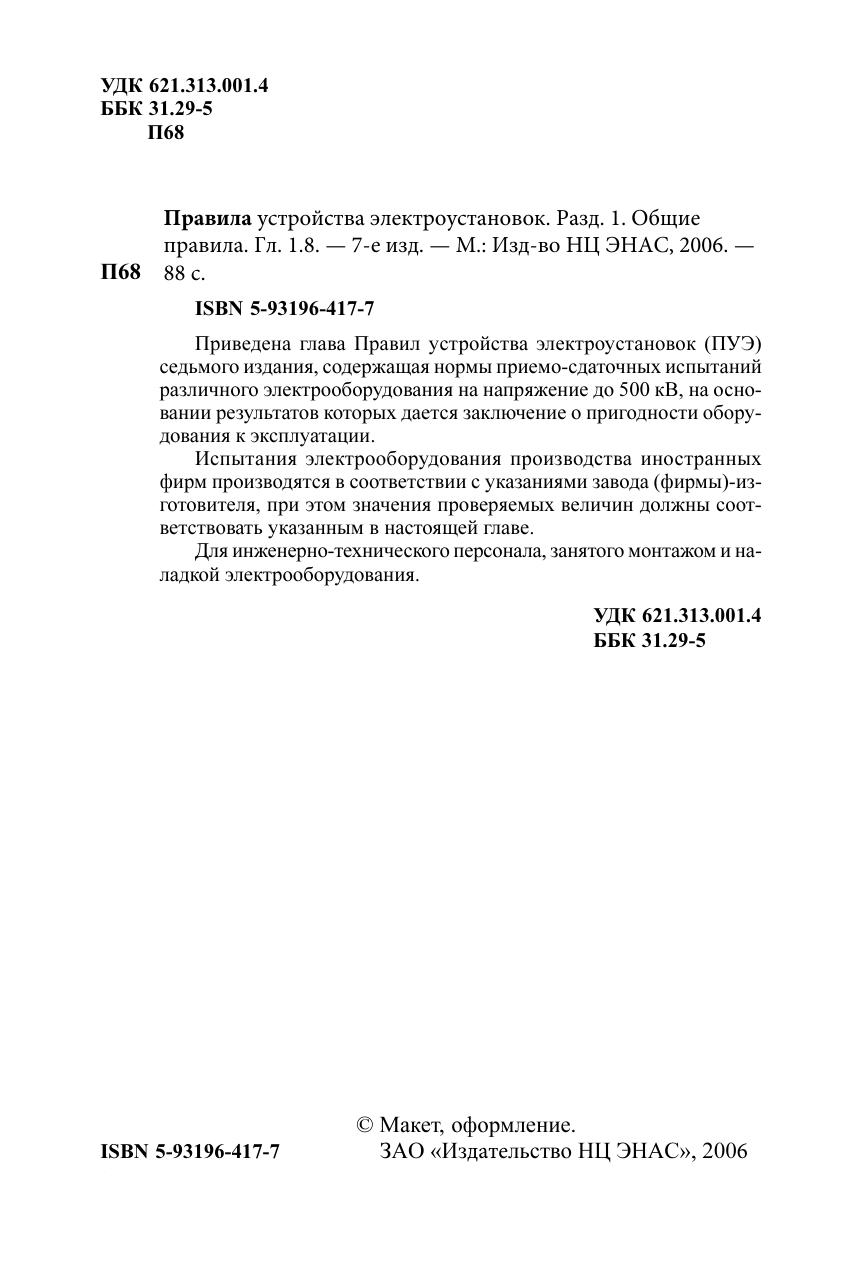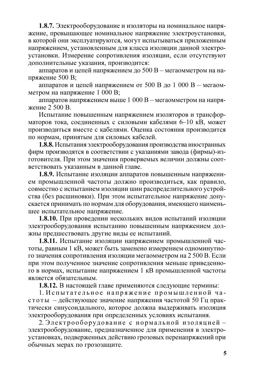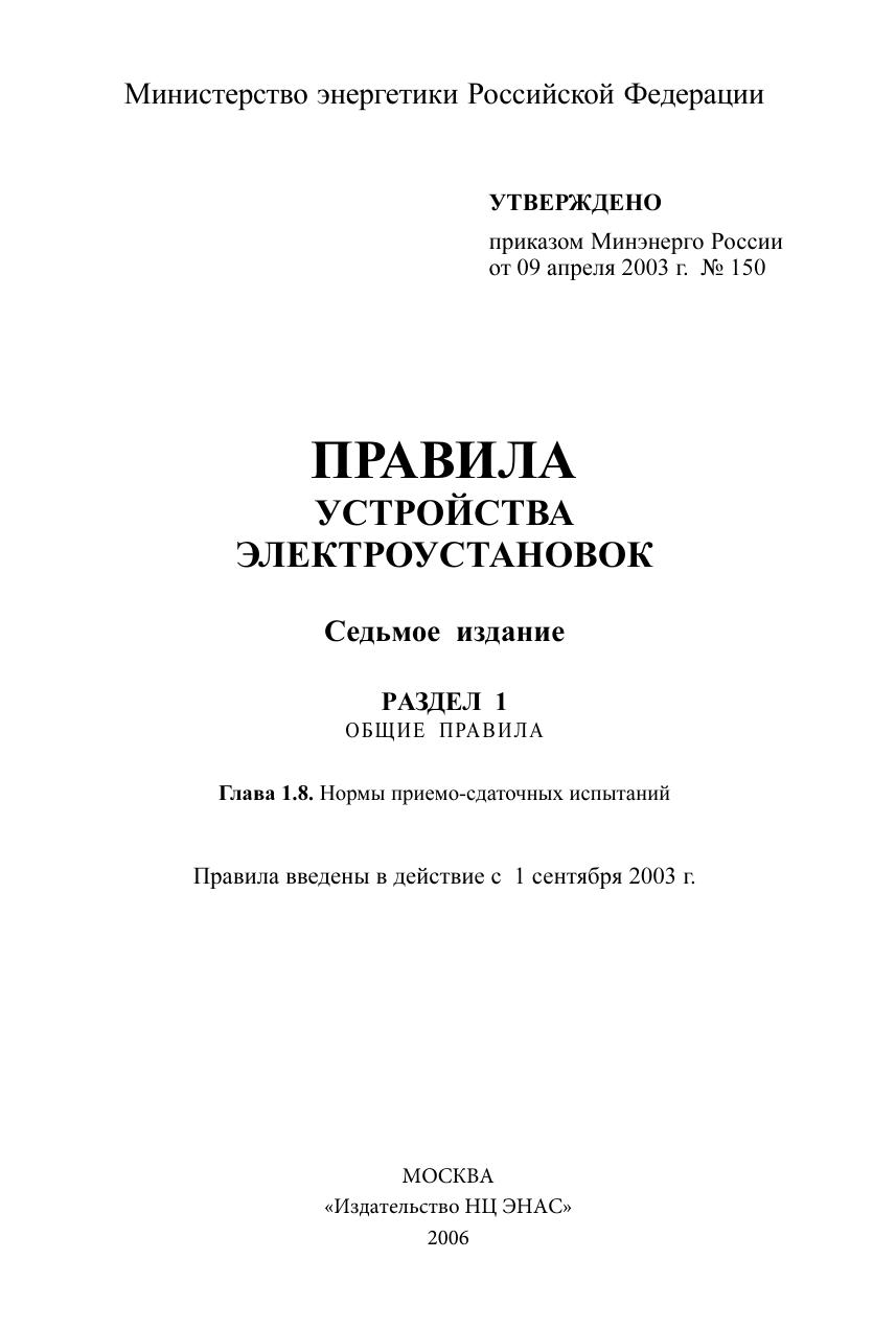 Правила устройства электроустановок. Разд. 1. Общие правила. Гл. 1.8. Нормы приемо-сдаточных испытаний