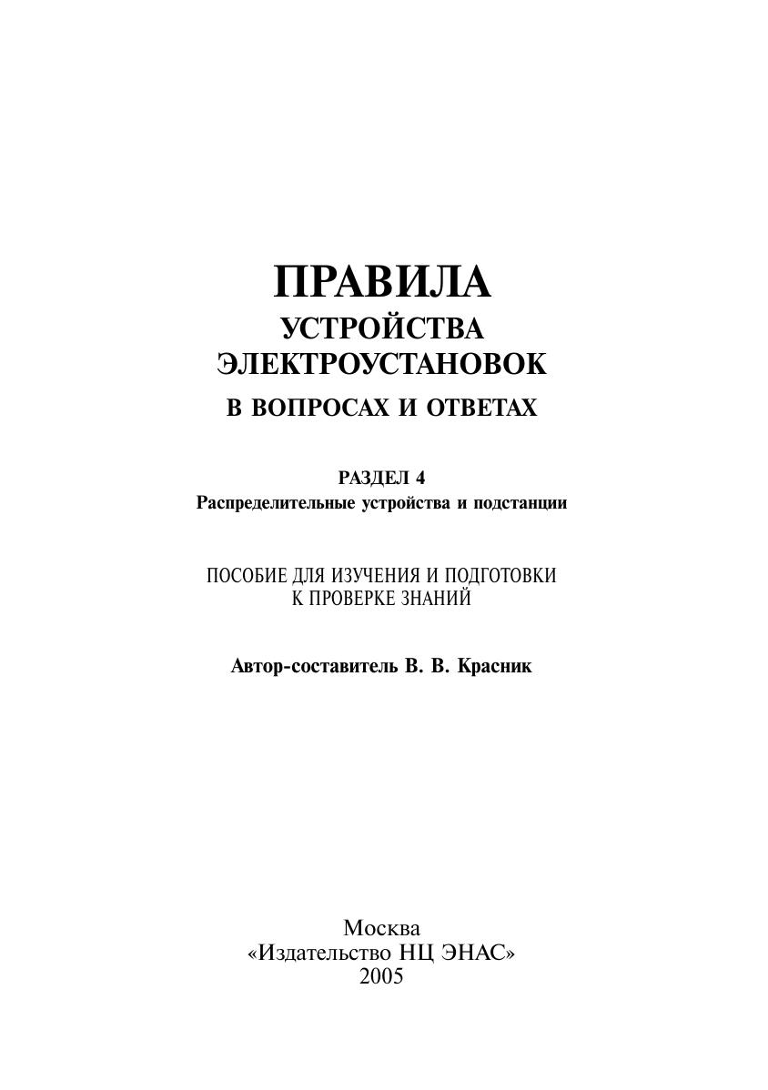 Правила устройства электроустановок в вопросах и ответах. Раздел 4. Распределительные устройства и подстанции: Пособие для изучения и подготовки к проверке знаний