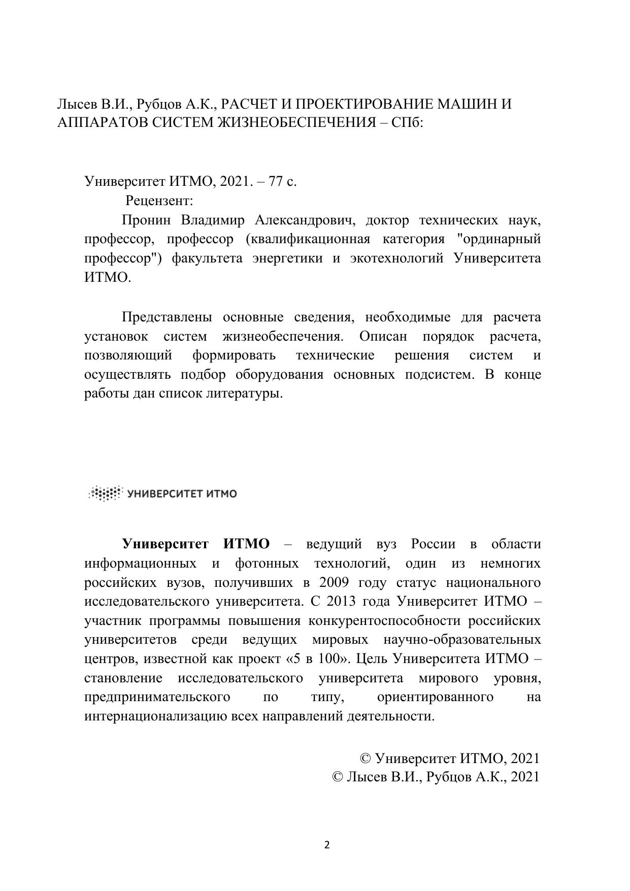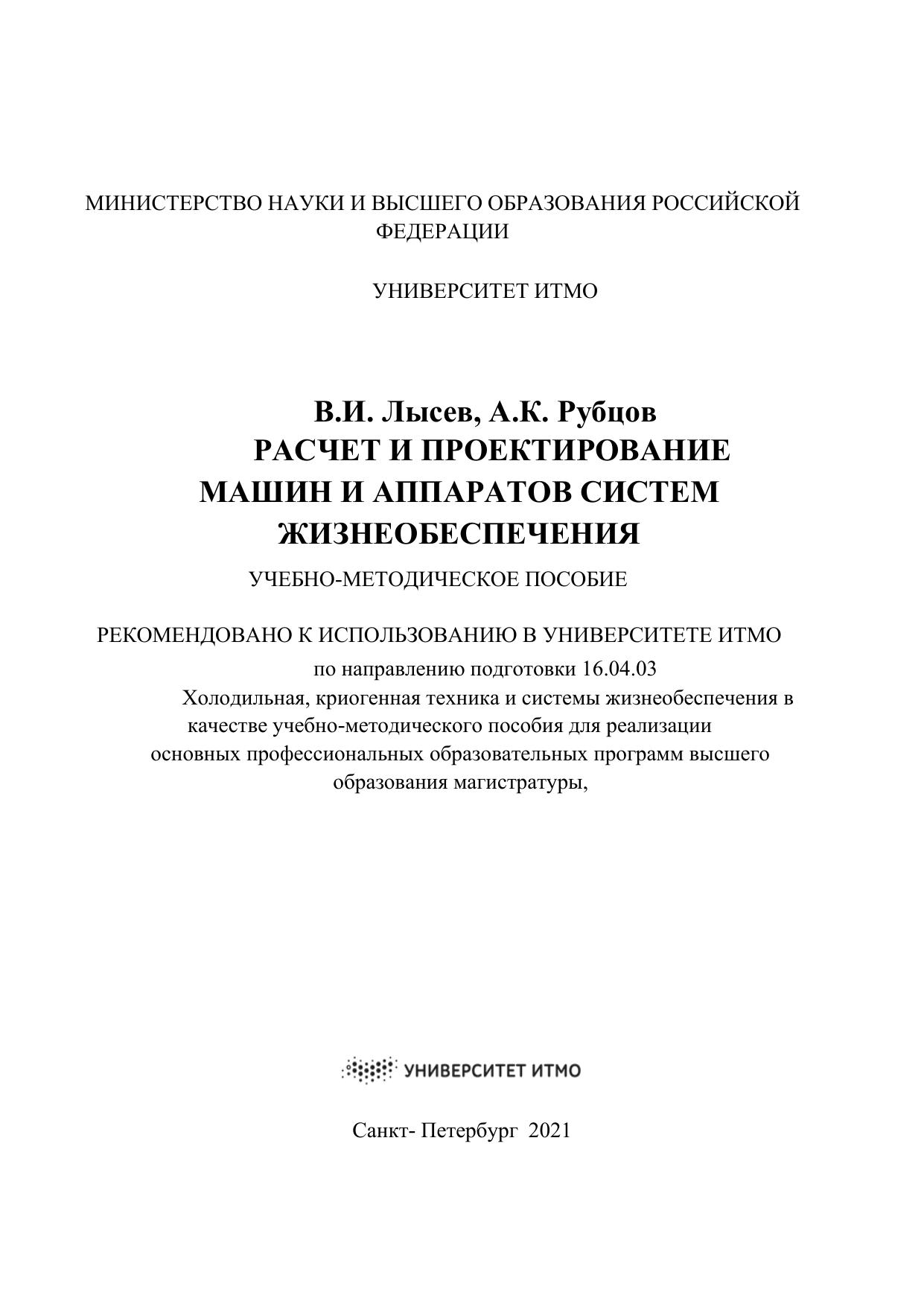 Расчет и проектирование машин и аппаратов систем жизнеобеспечения