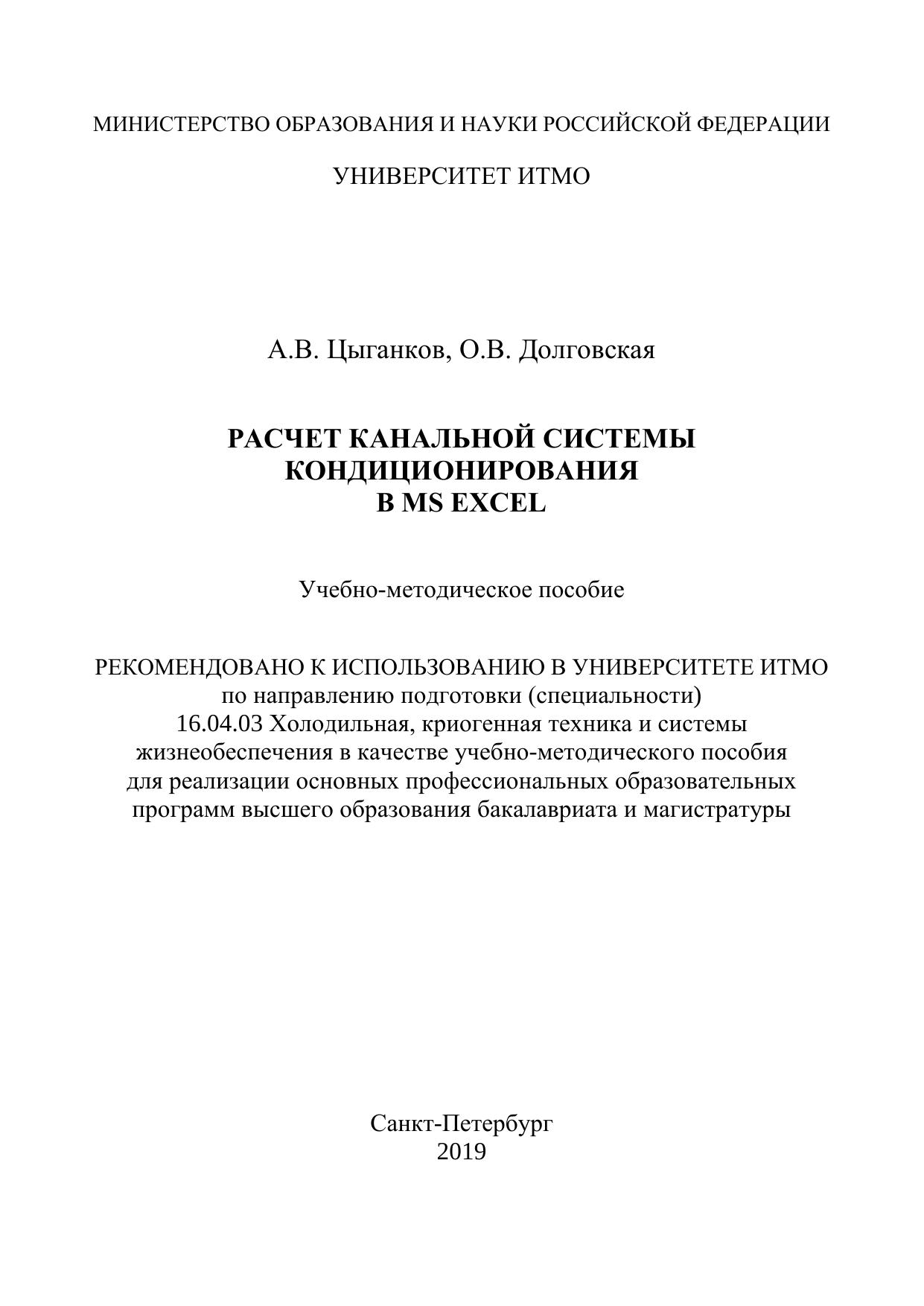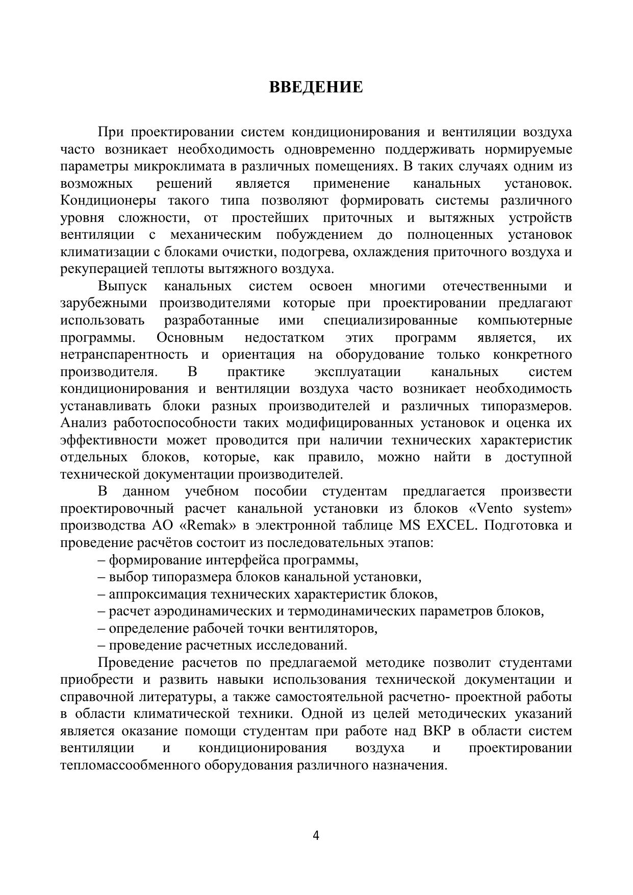 В учебно-методическом пособии рассматривается расчёт канальных систем кондиционирования из блоков «Vento system» в электронной таблице MS EXCEL.