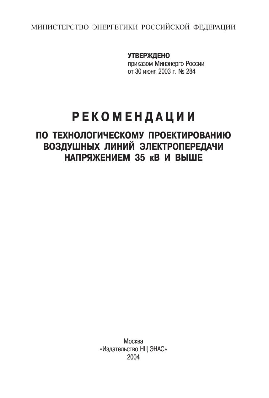 Рекомендации содержат основные положения по технологическому проектированию ВЛ переменного тока напряжением 35 кВ и выше. Настоящие Рекомендации распространяются на вновь сооружаемые и подлежащие техническому перевооружению и реконструкции ВЛ напряжением 35 кВ и выше. Для специалистов проектных и эксплуатационных организаций электроэнергетики.