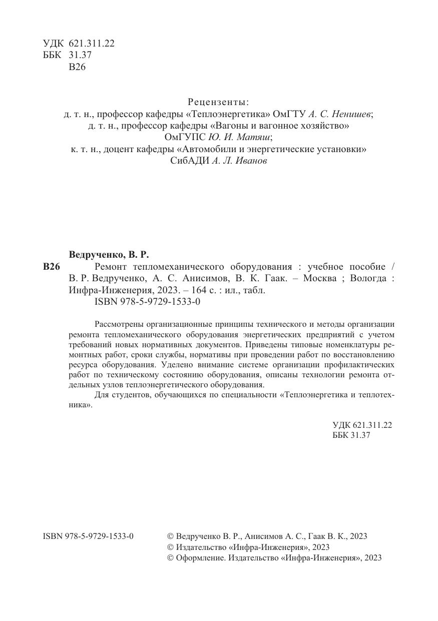 Рассмотрены организационные принципы технического и методы организации ремонта тепломеханического оборудования энергетических предприятий с учетом требований новых нормативных документов. Приведены типовые номенклатуры ремонтных работ, сроки службы, нормативы при проведении работ по восстановлению ресурса оборудования. Уделено внимание системе организации профилактических работ по техническому состоянию оборудования, описаны технологии ремонта отдельных узлов теплоэнергетического оборудования.
