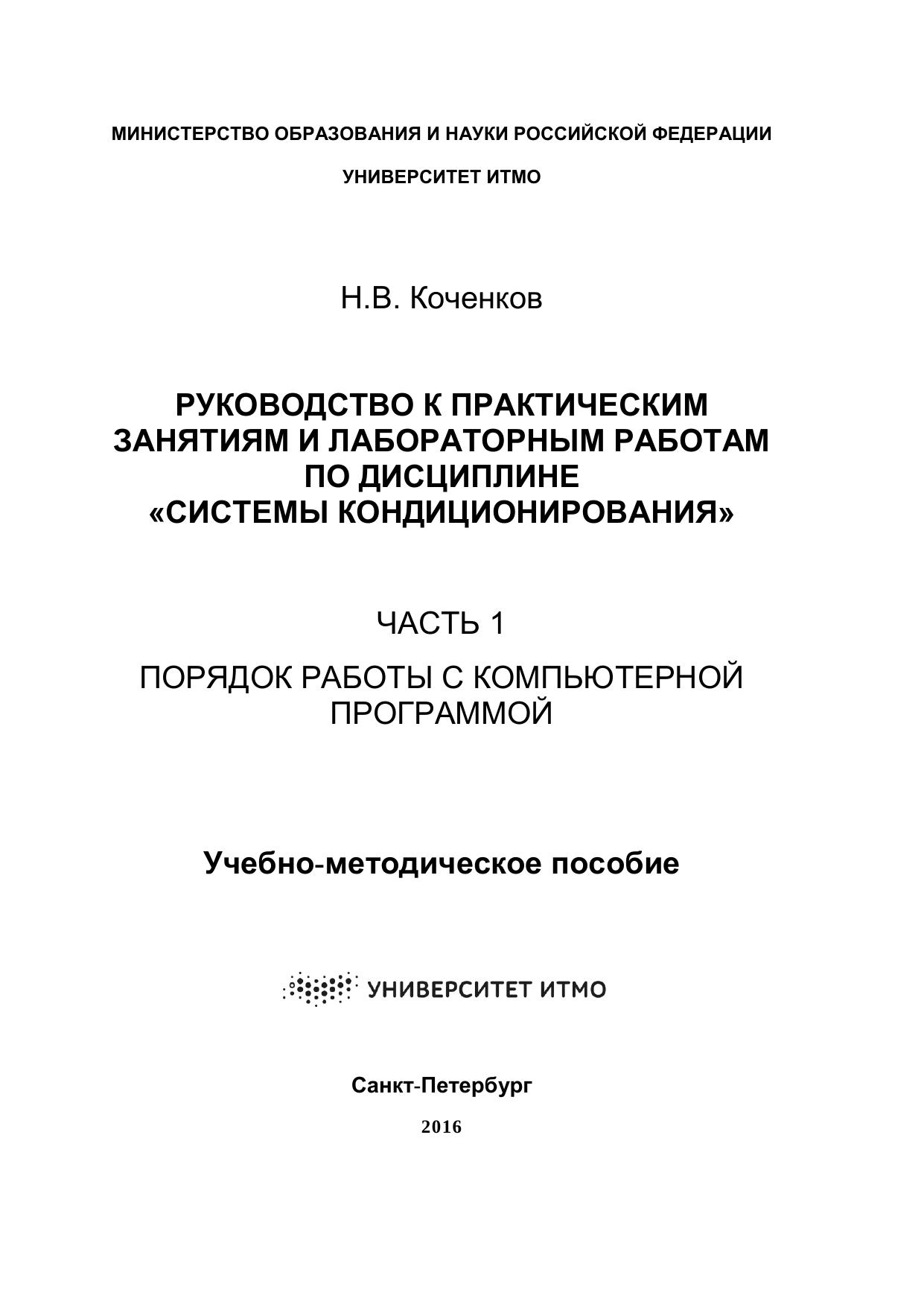 Руководство к практическим занятиям и лабораторным работам по дисциплине «Системы кондиционирования». Ч.1. Порядок работы с компьютерной программой: учебно-методическое пособие