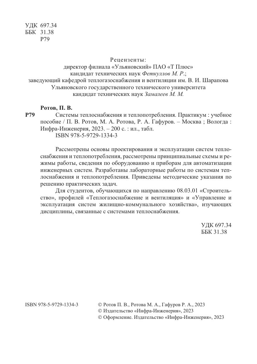Рассмотрены основы проектирования и эксплуатации систем теплоснабжения и теплопотребления, рассмотрены принципиальные схемы и режимы работы, сведения по оборудованию и приборам для автоматизации инженерных систем. Разработаны лабораторные работы по системам теплоснабжения и теплопотребления. Приведены методические указания по решению практических задач.