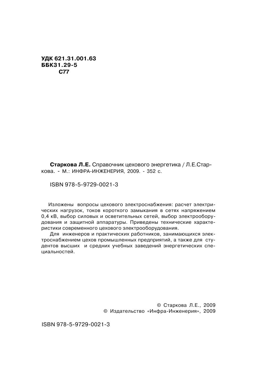 Изложены вопросы цехового электроснабжения: расчет электрических нагрузок, токов короткого замыкания в сетях напряжением 0,4 кВ, выбор силовых и осветительных сетей, выбор электрооборудования и защитной аппаратуры. Приведены технические характеристики современного цехового электрооборудования. Для инженеров и практических работников, занимающихся электроснабжением цехов промышленных предприятий, а также для студентов высших и средних учебных заведений энергетических специальностей.