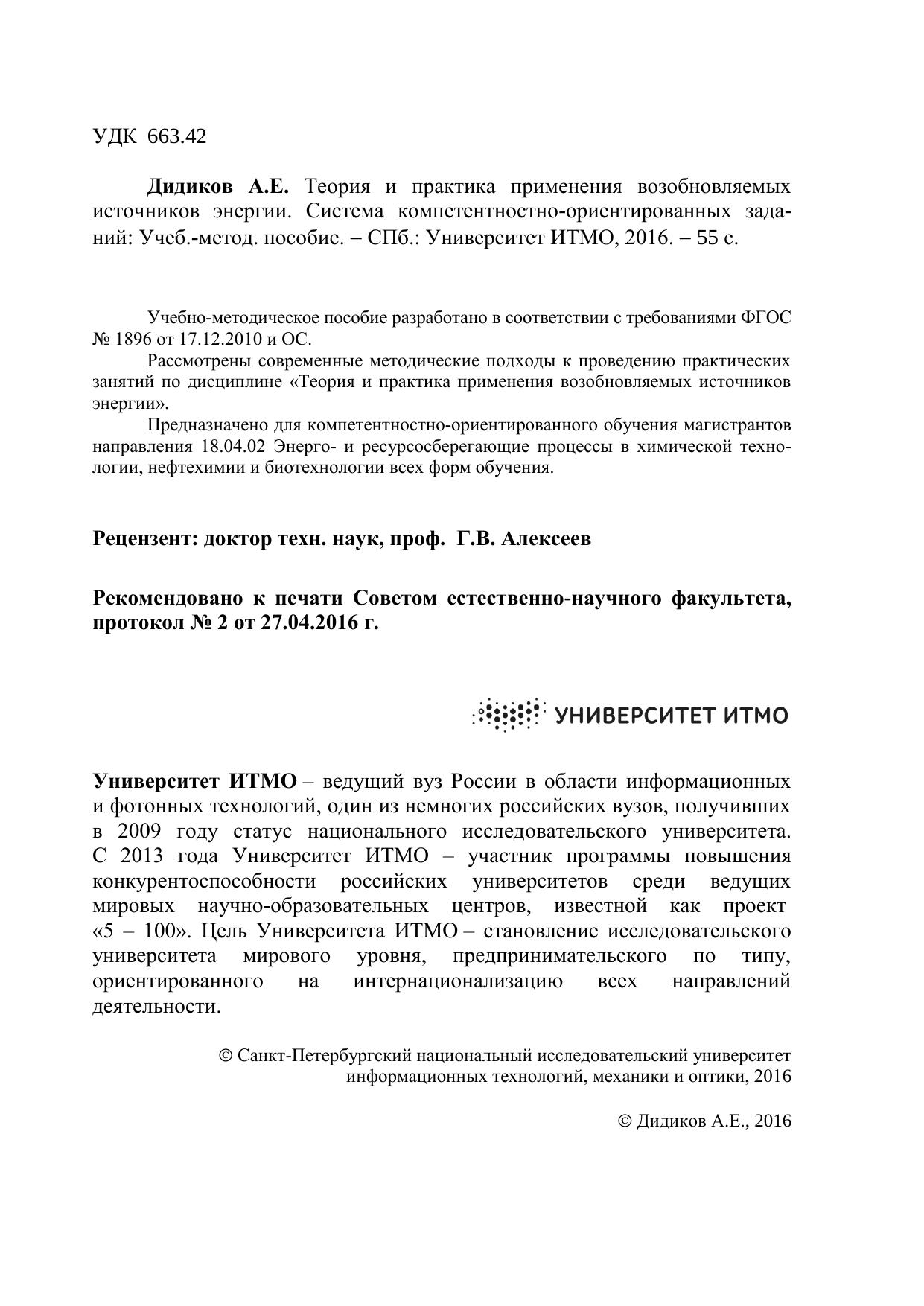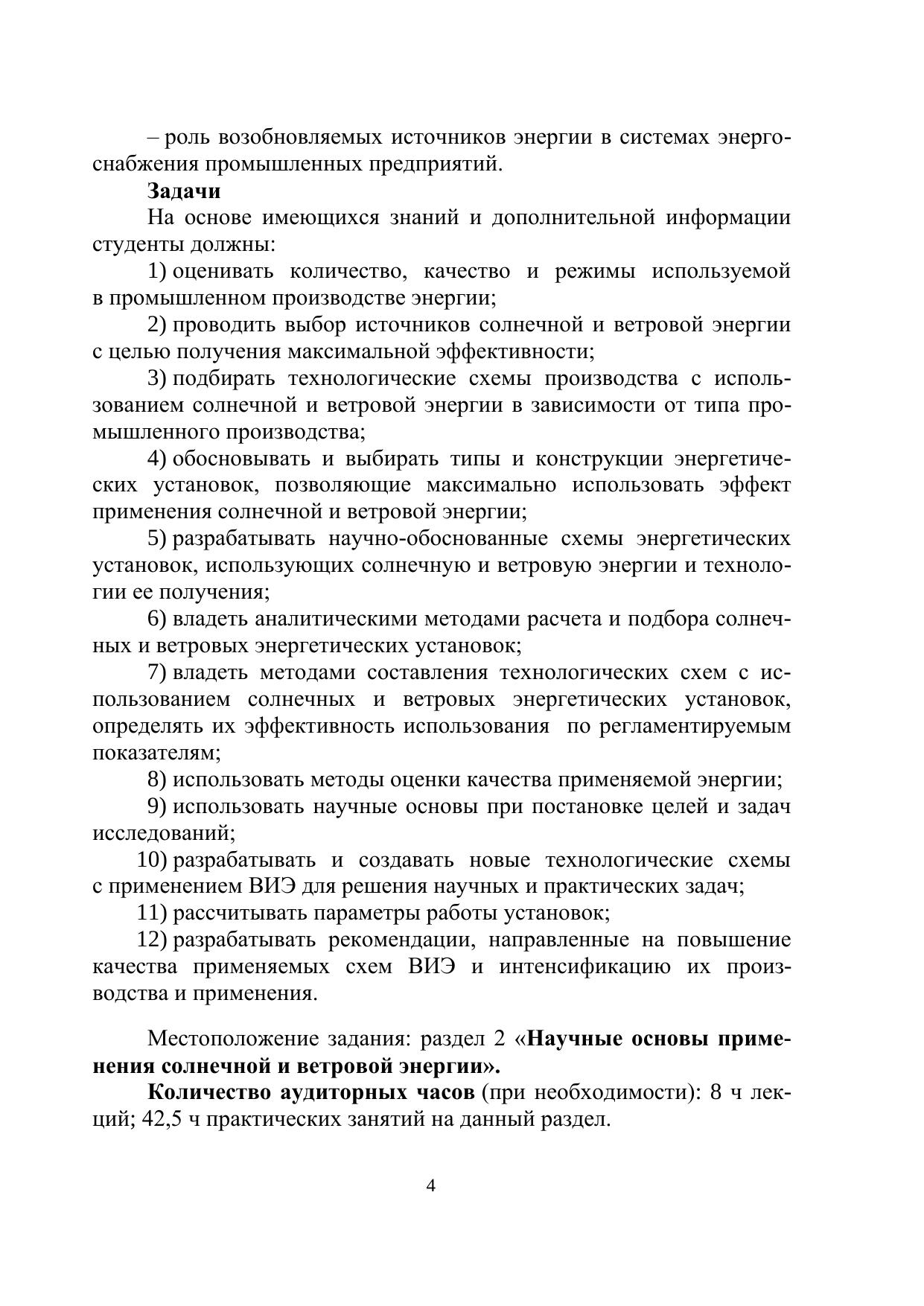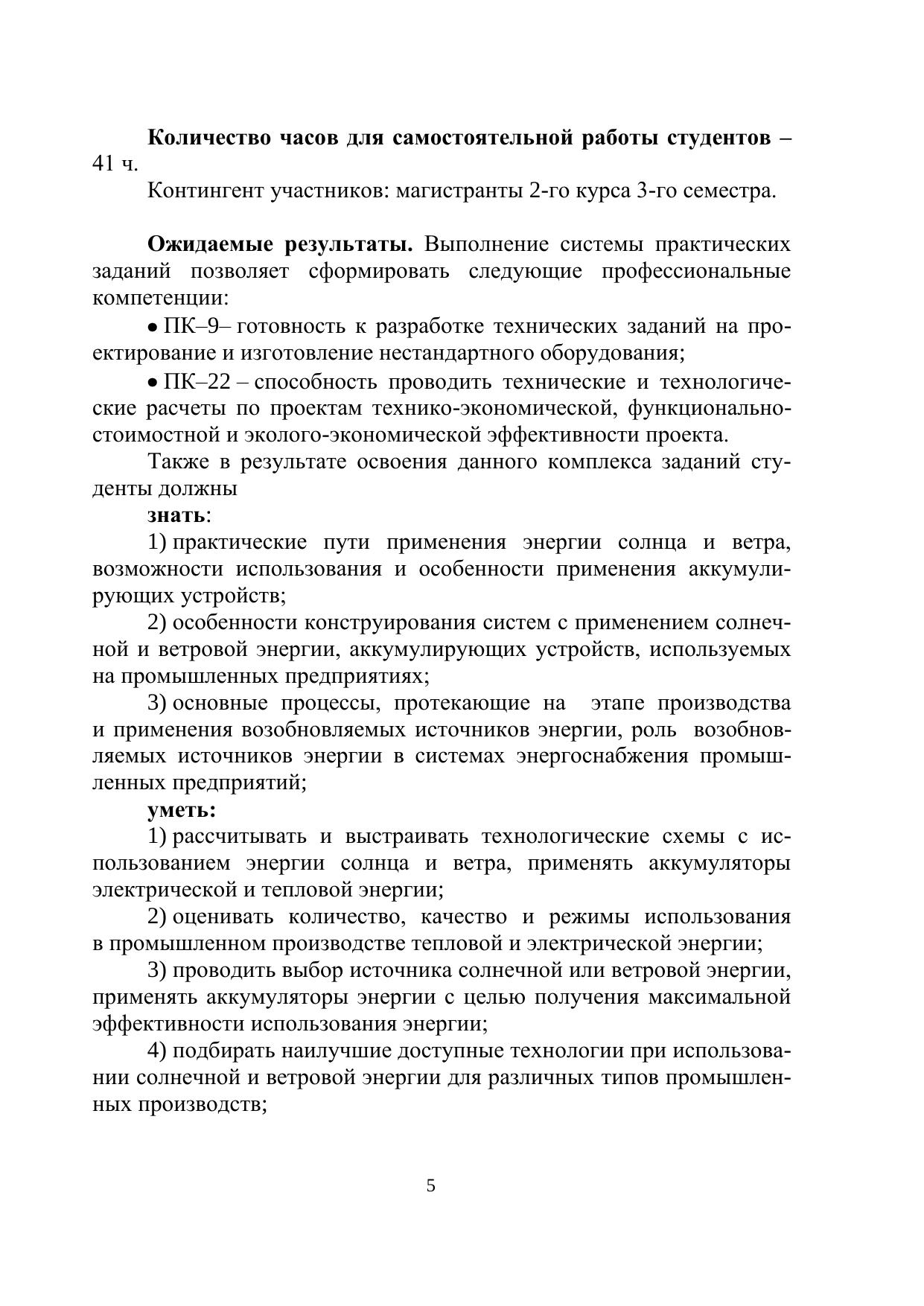 Учебно-методическое пособие разработано в соответствии с требованиями ФГОС № 1896 от 17.12.2010 и ОС. Рассмотрены современные методические подходы к проведению практических занятий по дисциплине «Теория и практика применения возобновляемых источников энергии».