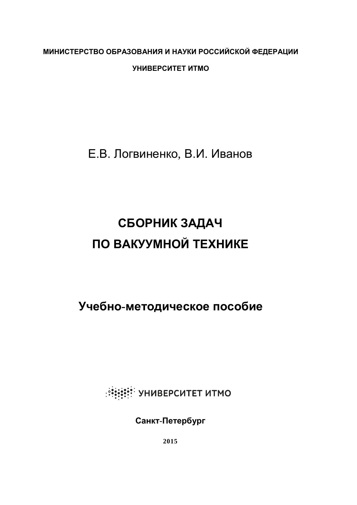 Сборник задач по вакуумной технике: учебно-методическое пособие