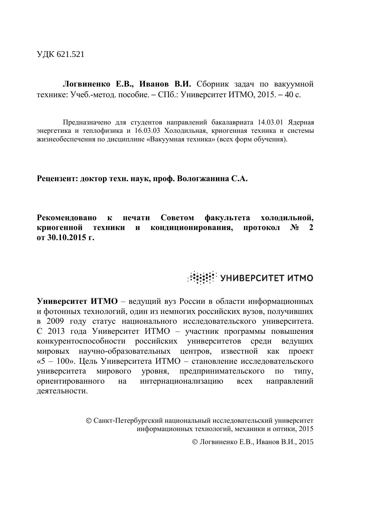 Предназначено для студентов направлений бакалавриата 14.03.01 Ядерная энергетика и теплофизика и 16.03.03 Холодильная, криогенная техника и системы жизнеобеспечения по дисциплине «Вакуумная техника» (всех форм обучения).