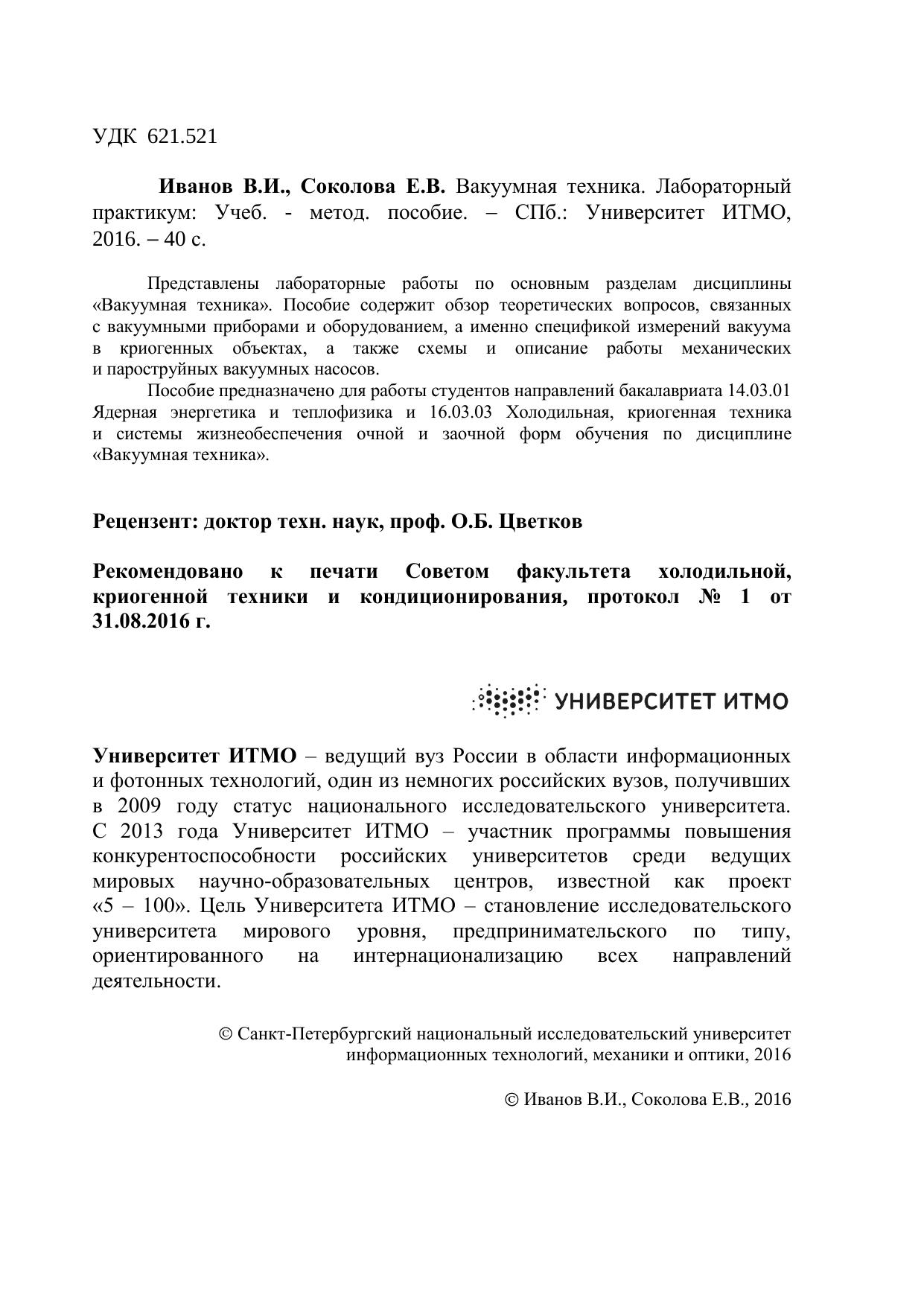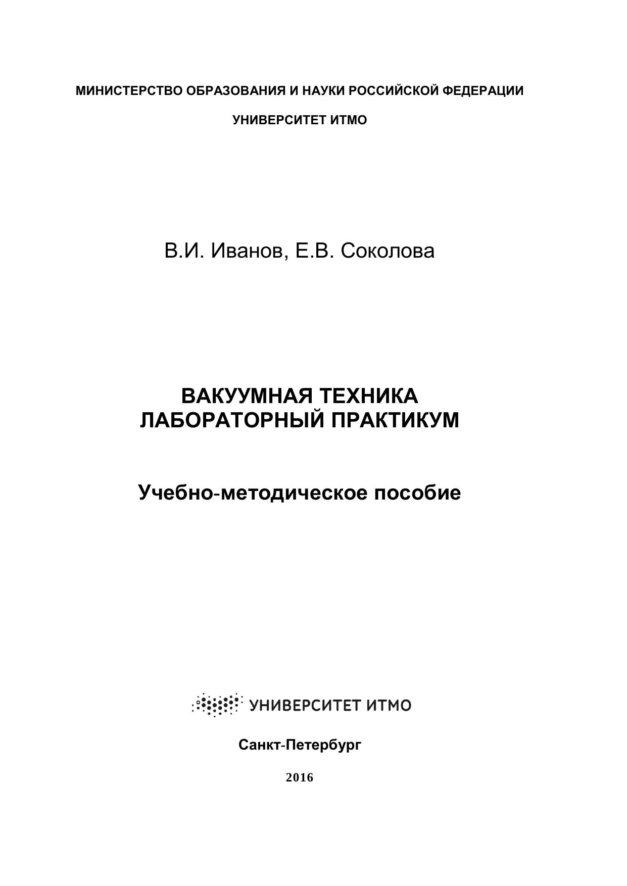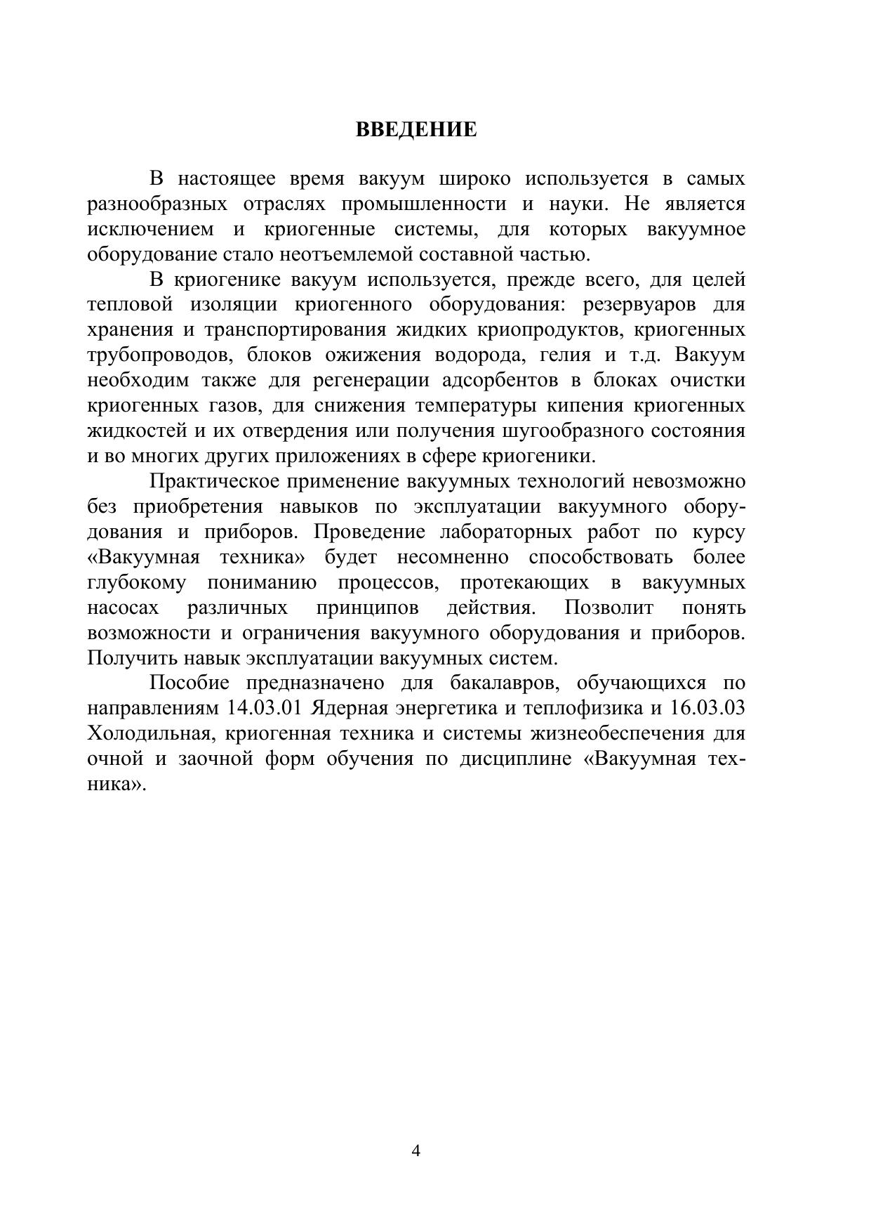 Пособие предназначено для работы студентов направлений бакалавриата 14.03.01 Ядерная энергетика и теплофизика и 16.03.03 Холодильная, криогенная техника и системы жизнеобеспечения очной и заочной форм обучения по дисциплине «Вакуумная техника».
