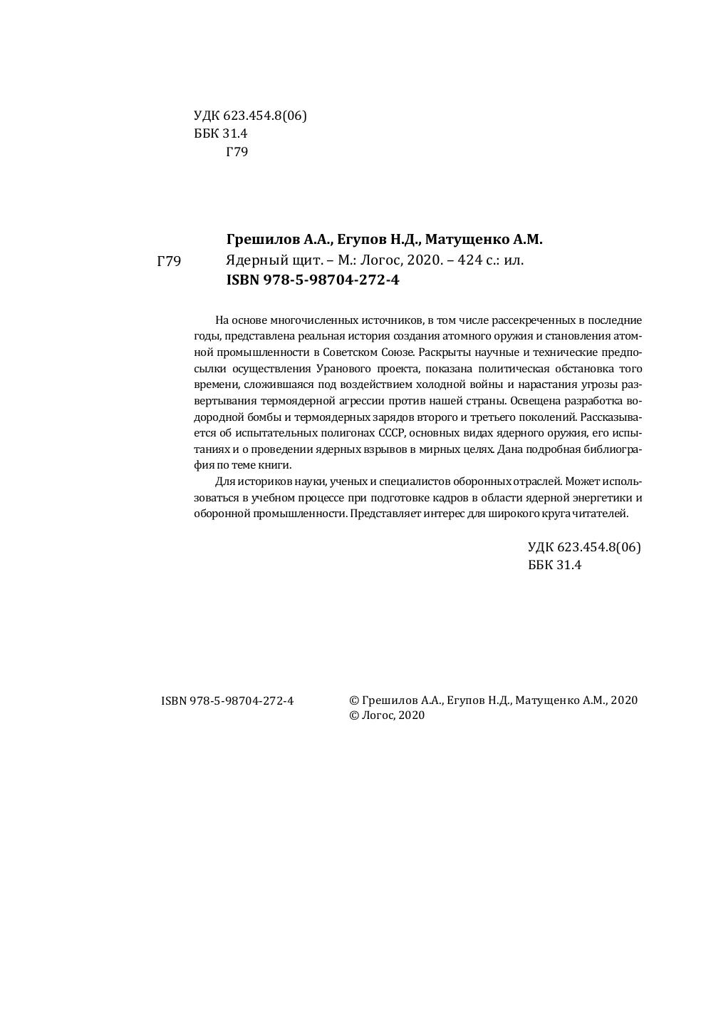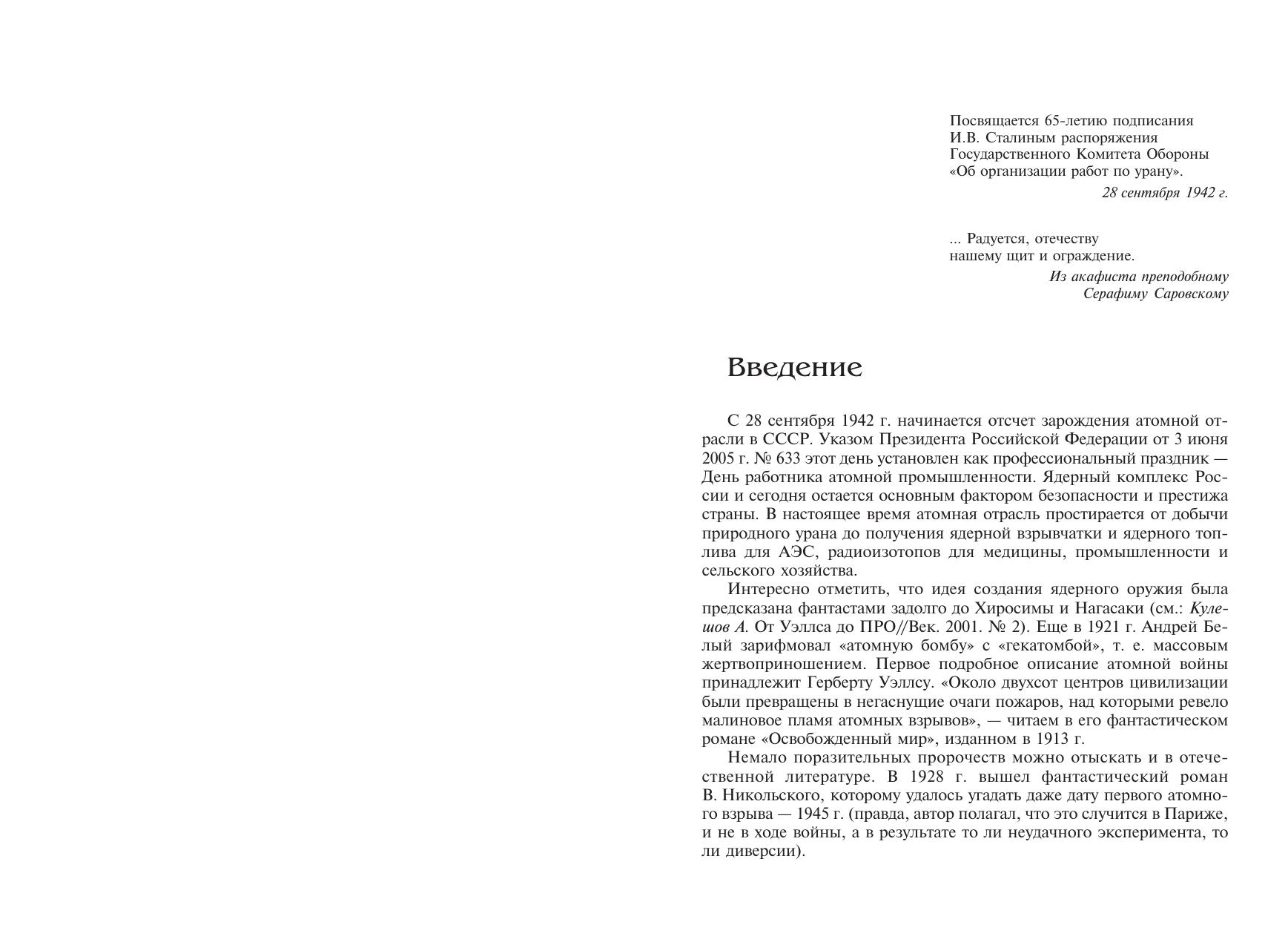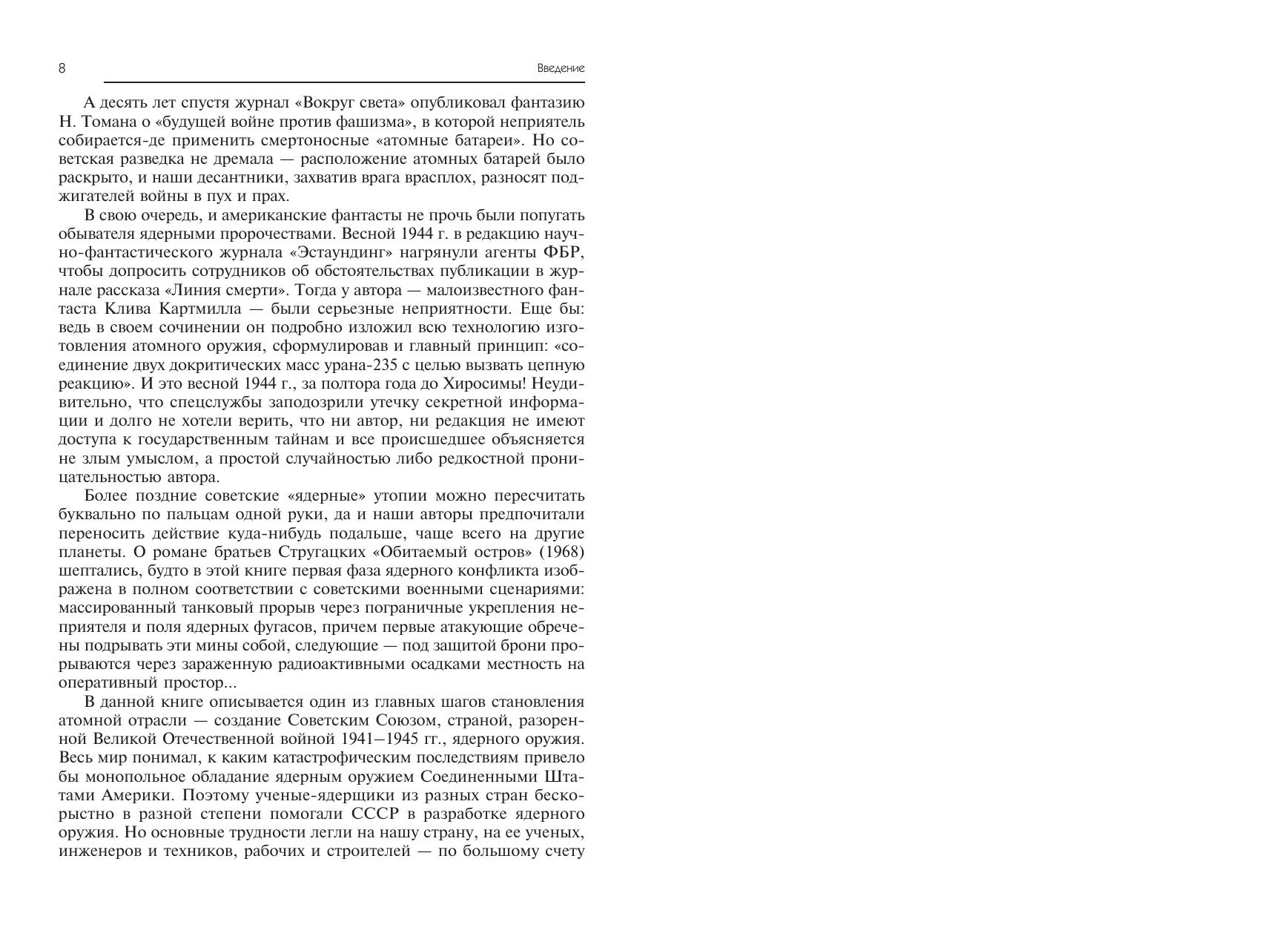 На основе многочисленных источников, в том числе рассекреченных в последние годы, представлена реальная история создания атомного оружия и становления атомной промышленности в Советском Союзе. Раскрыты научные и технические предпосылки осуществления Уранового проекта, показана политическая обстановка того времени, сложившаяся под воздействием холодной войны и нарастания угрозы развертывания термоядерной агрессии против нашей страны. Освещена разработка водородной бомбы и термоядерных зарядов второго и третьего поколений. Рассказывается об испытательных полигонах СССР, основных видах ядерного оружия, его испытаниях и о проведении ядерных взрывов в мирных целях. Дана подробная библиография по теме книги. Для историков науки, ученых и специалистов оборонных отраслей. Может использоваться в учебном процессе при подготовке кадров в области ядерной энергетики и оборонной промышленности. Представляет интерес для широкого круга читателей.