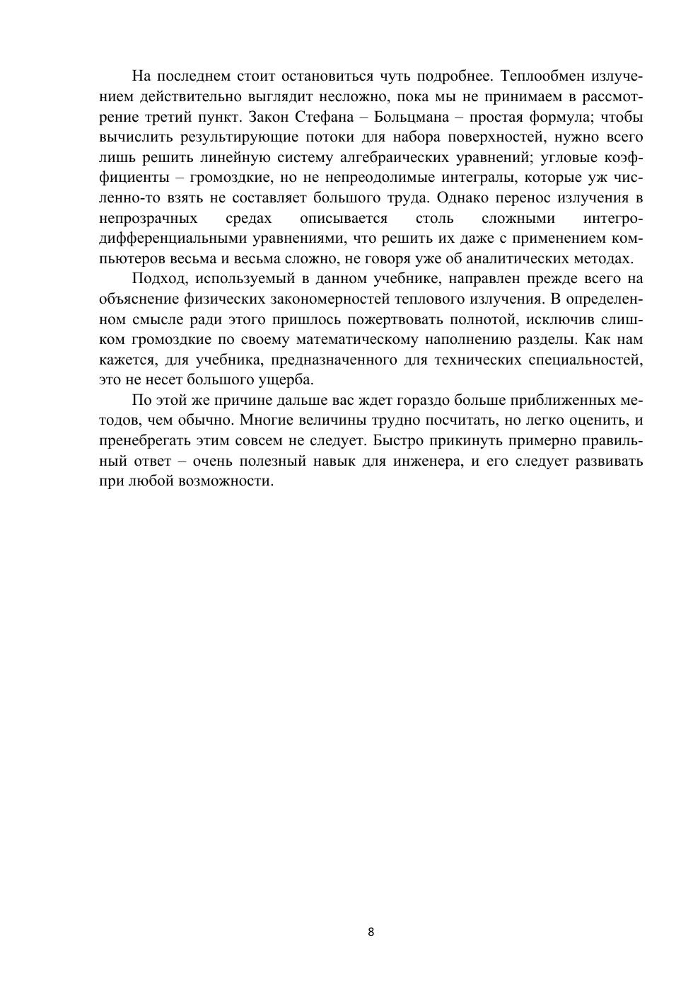 В учебнике излагаются основы теплообмена излучением: основные законы излучения, вычисление угловых коэффициентов, расчет теплообмена в системе твердых поверхностей, перенос излучения в непрозрачных средах. В конце учебника приведен набор типовых задач с решениями. Учебник предназначен для студентов технических специальностей университетов.