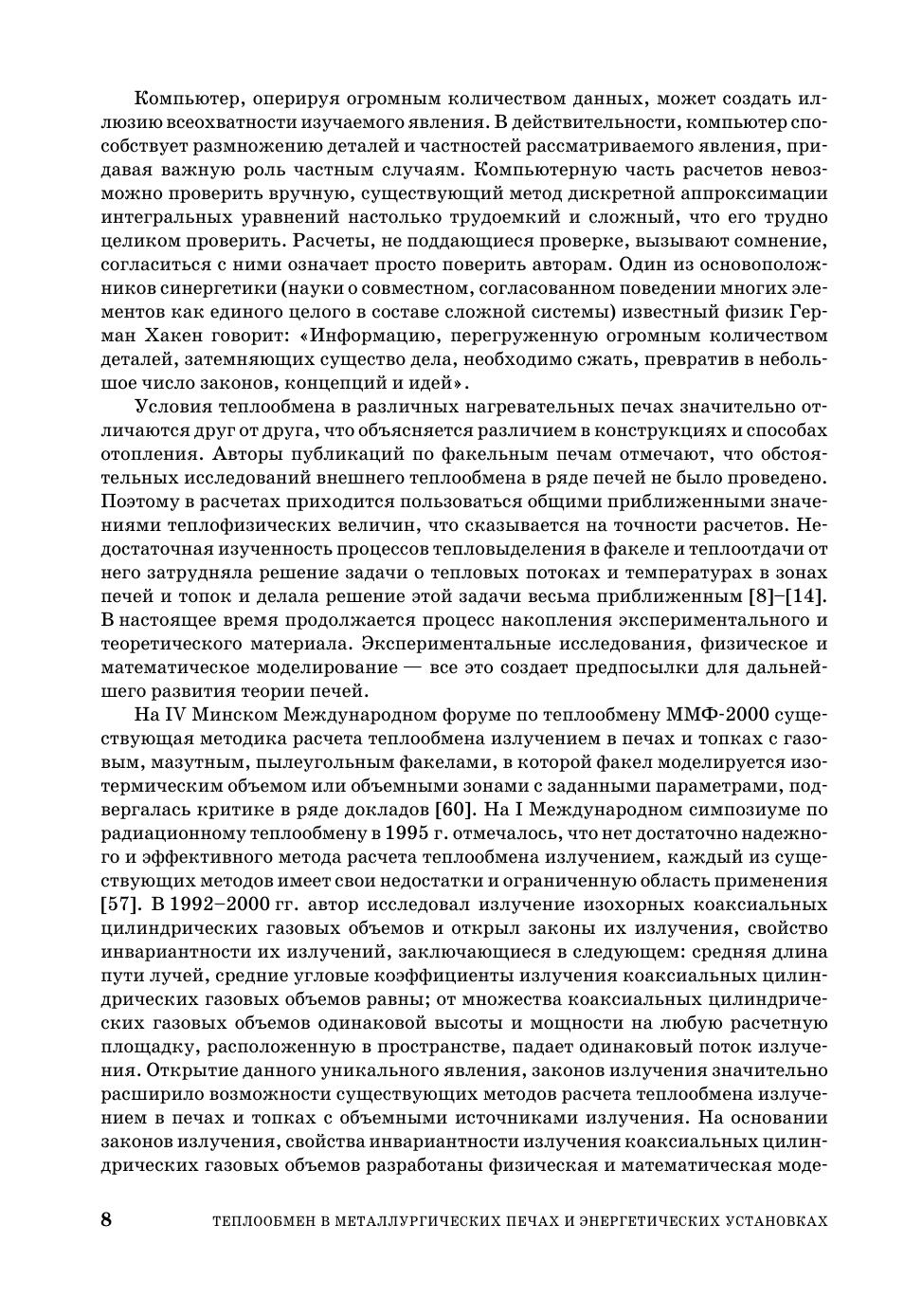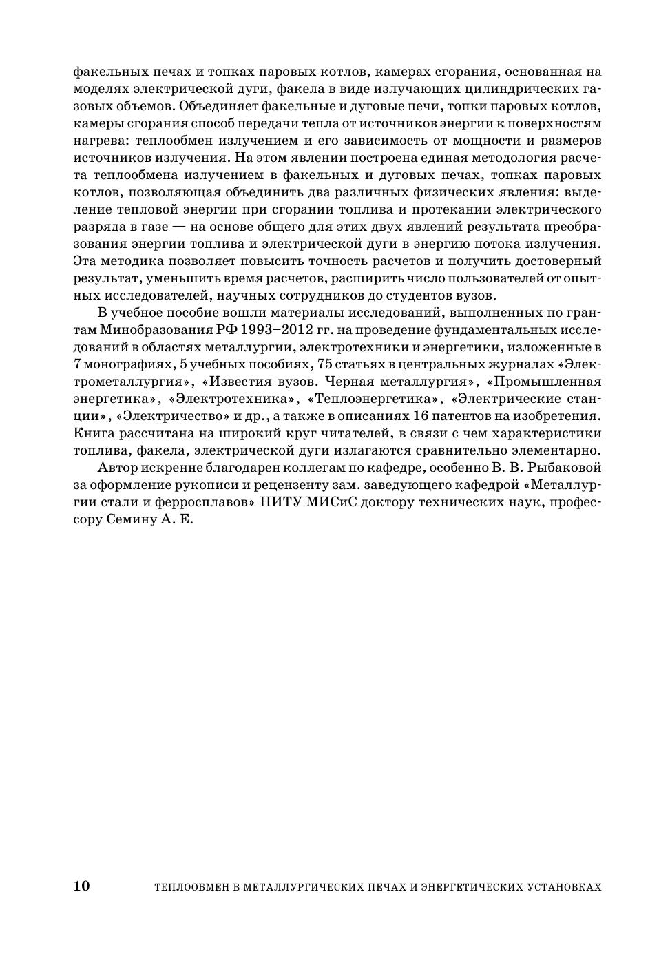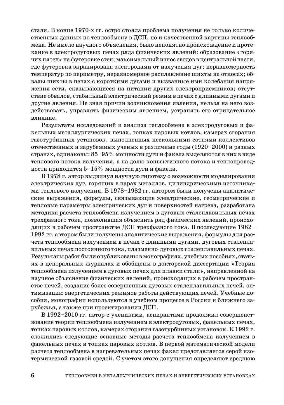 Книга содержит теоретические основы расчета теплообмена в электродуговых, плазменно-дуговых и факельных печах черной металлургии и факельных топках паровых котлов и камерах сгорания газотурбинных установок. Книга снабжена обширным иллюстрированным и справочным аппаратом в том числе списком литературы, насчитывающим несколько сот наименований. Каждая глава книги снабжена примерами расчета теплообмена в электродуговых, плазменно-дуговых сталеплавильных печах, факельных нагревательных печах черной металлургии, в топках паровых котлов электростанций, в камерах сгорания газотурбинных и парогазовых установок электростанций. Книга предназначена для преподавателей технических и технологических вузов, студентов, обучающихся по направлениям «Металлургия», «Теплоэнергетика», «Электротехника и электротехнологии», «Энергетическое машиностроение», а также рассчитана на инженеров, научных работников, работающих в области проектирования, изготовления, эксплуатации, исследования металлургических, электротермических, энергетических установок.