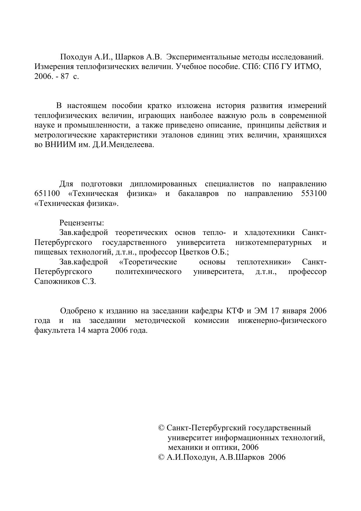 Экспериментальные методы исследований. Измерения теплофизических величин
