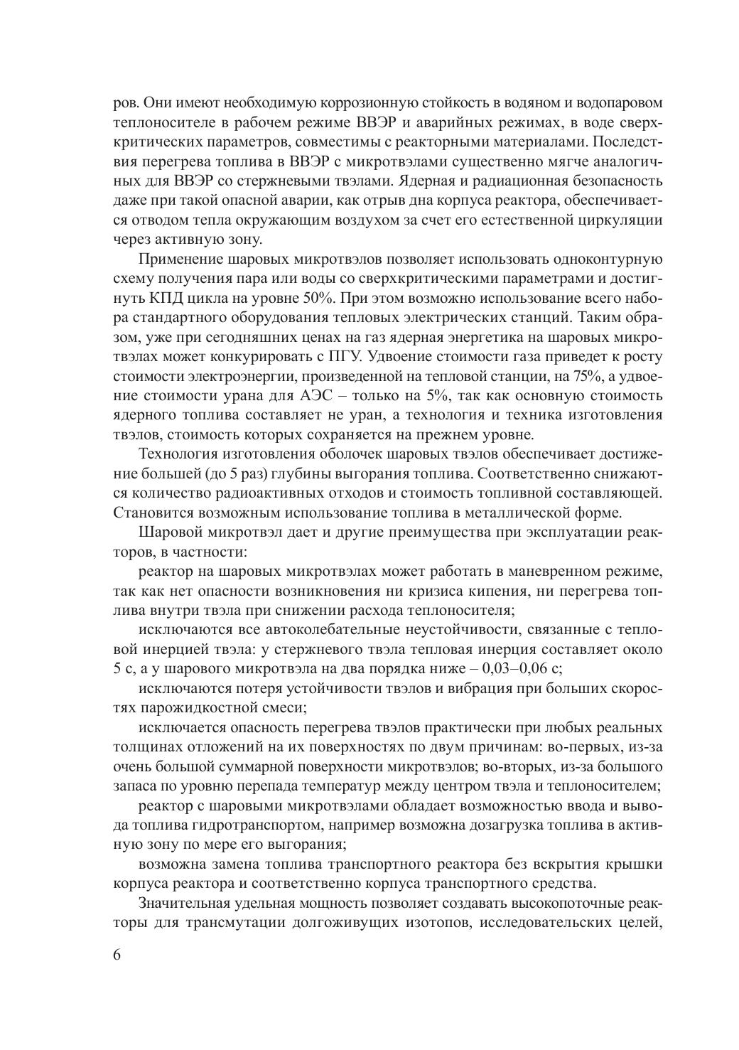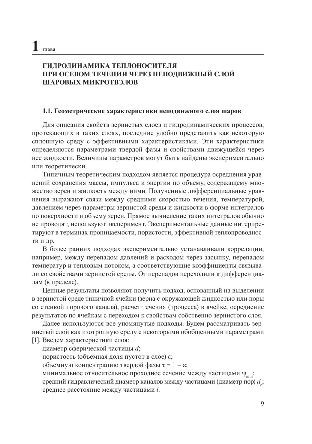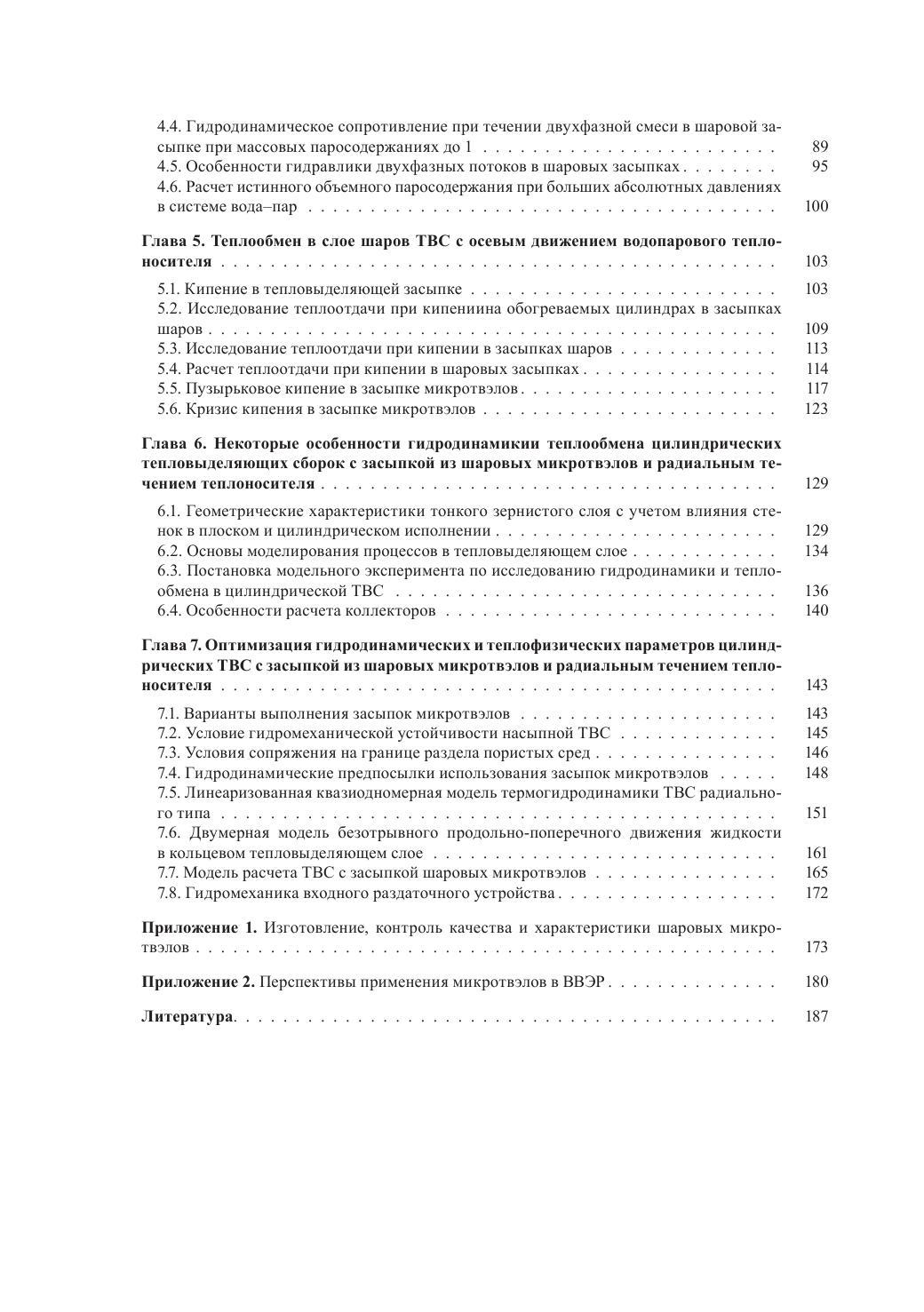 В книге изложены основные вопросы гидравлики и теплообмена в тепловыделяющих сборках (ТВС) ядерных реакторов насыпного типа с микротвэлами. Форма топлива в ТВС – шаровые микротвэлы диаметром около миллиметра, состоящие из топливного ядра и герметичной оболочки. Рассмотрены гидромеханика одно- и двухфазной жидкости в засыпках микротвэлов, основные структуры и параметры множеств шаров, теплоотдача к одно- и двухфазному теплоносителю, включая нестационарные процессы, обсуждены проблемы создания ТВС с радиальным и осевым движением теплоносителя, их свойства и особенности расчета. Приведены примеры устройства микротвэлов и ТВС. Основное внимание уделено описанию физической картины процессов, протекающих вокруг микротвэла и в ТВС, описанию и методическим особенностям проведения принципиальных экспериментов, выявлению возможных неустойчивых режимов протекания процессов. Приведены основные соотношения и зависимости, позволяющие приступить к расчету устройств с микротвэлами без привлечения дополнительных справочных данных. Математический анализ и выкладки по возможности упрощены. Предназначена для научно-технических работников, занимающихся проблемами атомной техники и специалистов по процессам переноса в пористых средах.