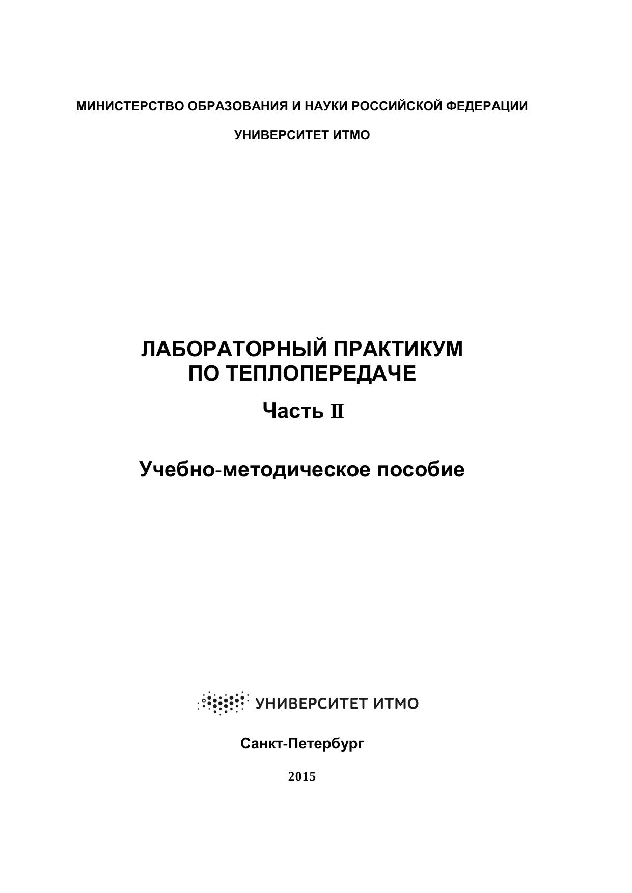 Лабораторный практикум по теплопередаче. Ч. II: учебно-методическое пособие