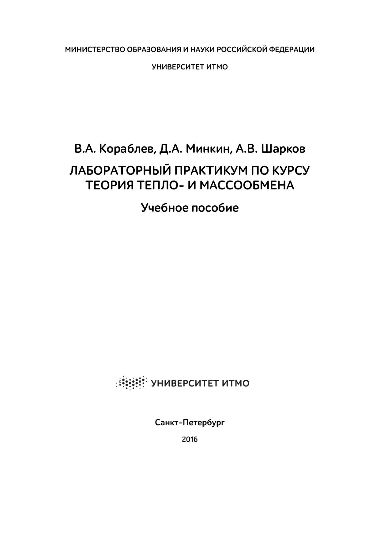 Лабораторный практикум по курсу теория тепло- и массообмена. Учебное пособие