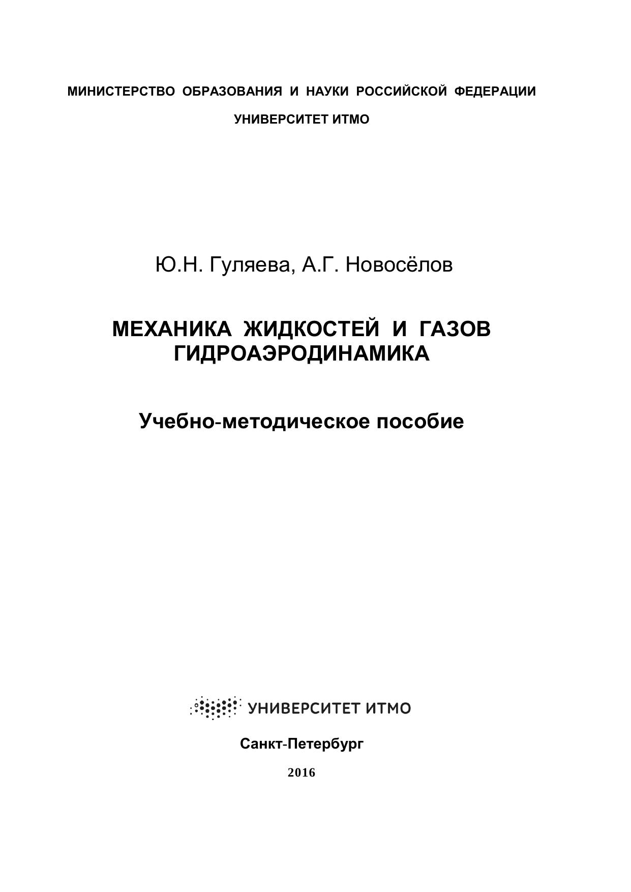 Механика жидкостей и газов. Гидроаэродинамика: учебно-методическое пособие