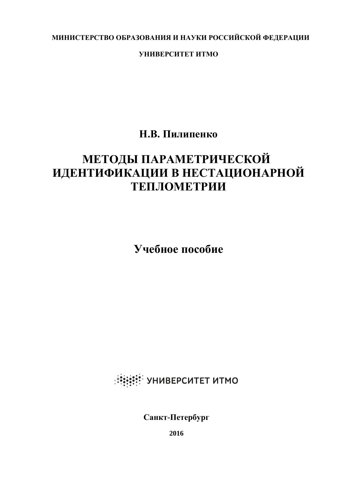 Методы параметрической идентификации в нестационарной теплометрии. Учебное пособие