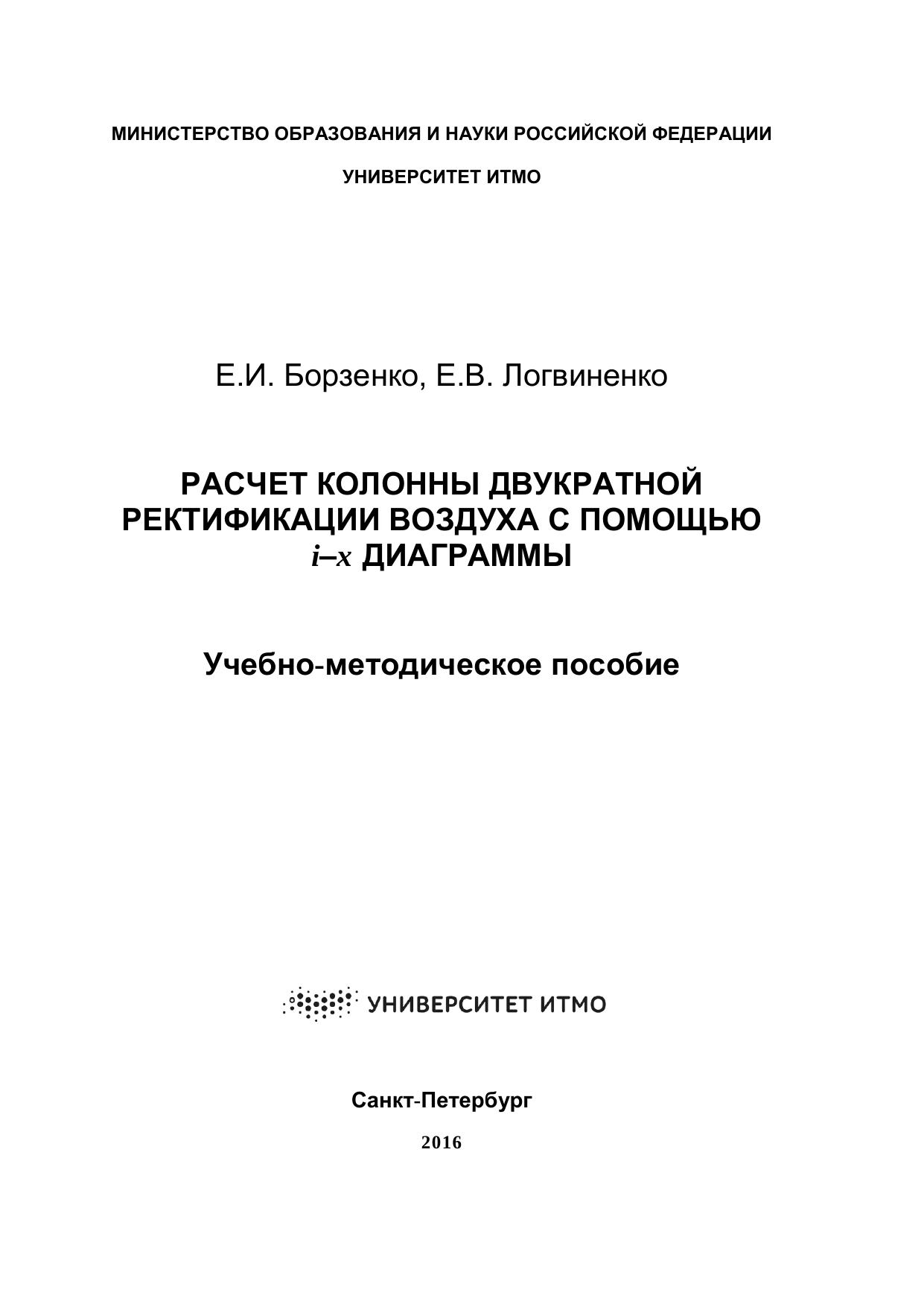 Расчет колоны двукратной ректификации воздуха с помощью i–х диаграммы: учебно-методическое пособие