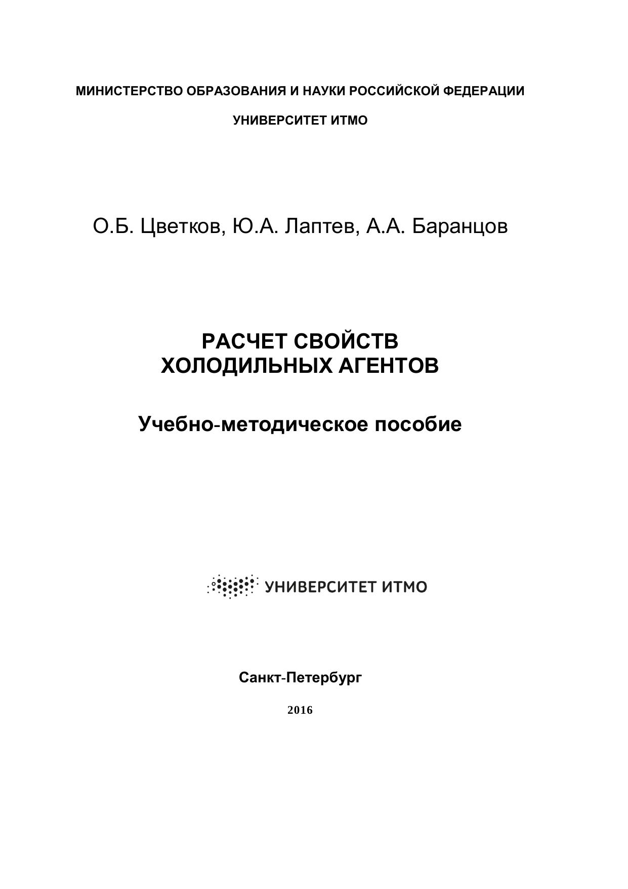 Авторы: Цветков О.Б., Лаптев Ю.А., Баранцов А.А.
