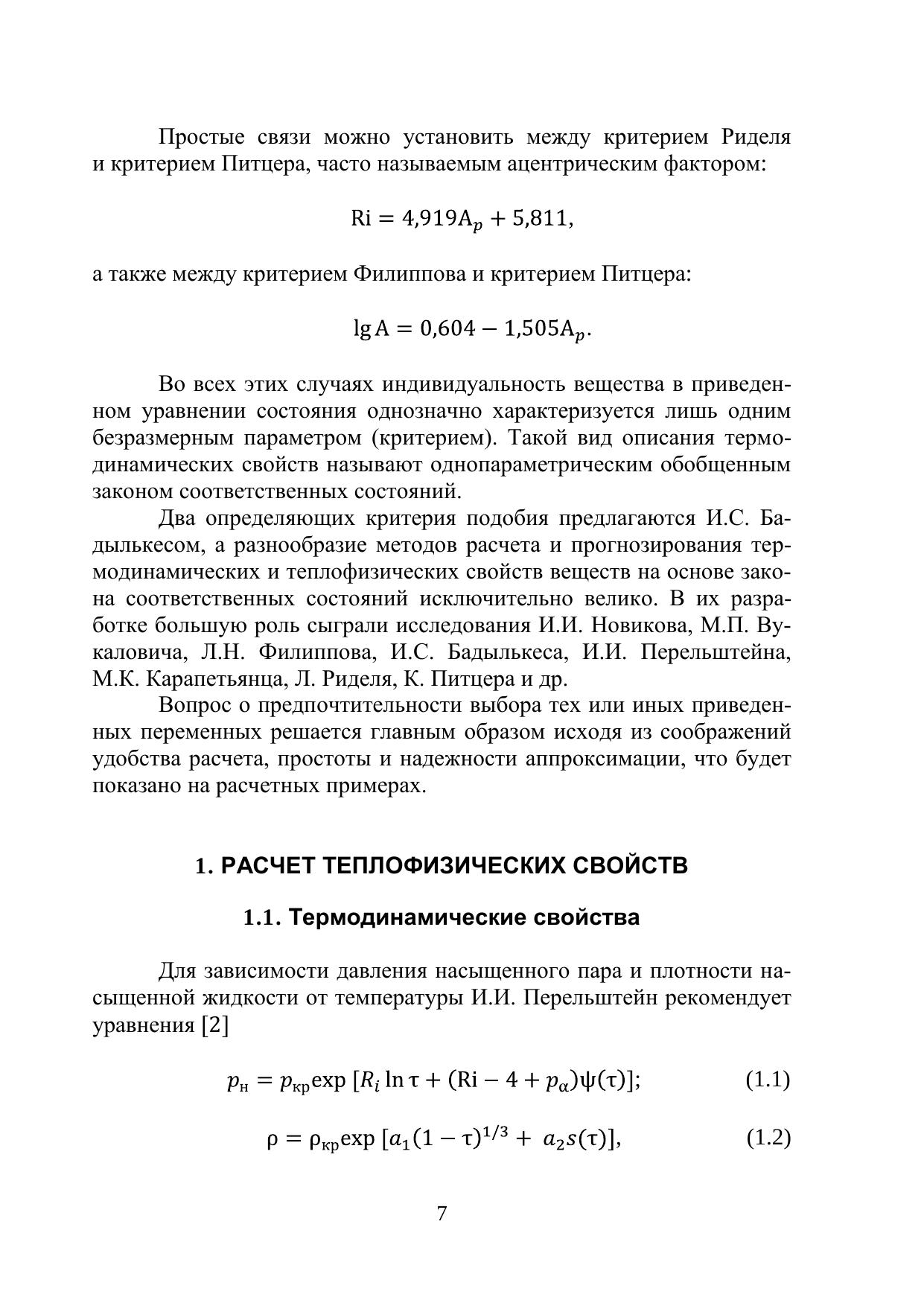 Представлены сведения о соответственном состоянии веществ, приведенных переменных, расчетные зависимости, конкретные примеры расчетов термодинамических свойств и кинетических коэффициентов. Рассмотрены возможности методов прогнозирования теплофизических свойств нормальных жидкостей и газов на примере хладагента. В приложении даны таблицы теплофизических свойств.