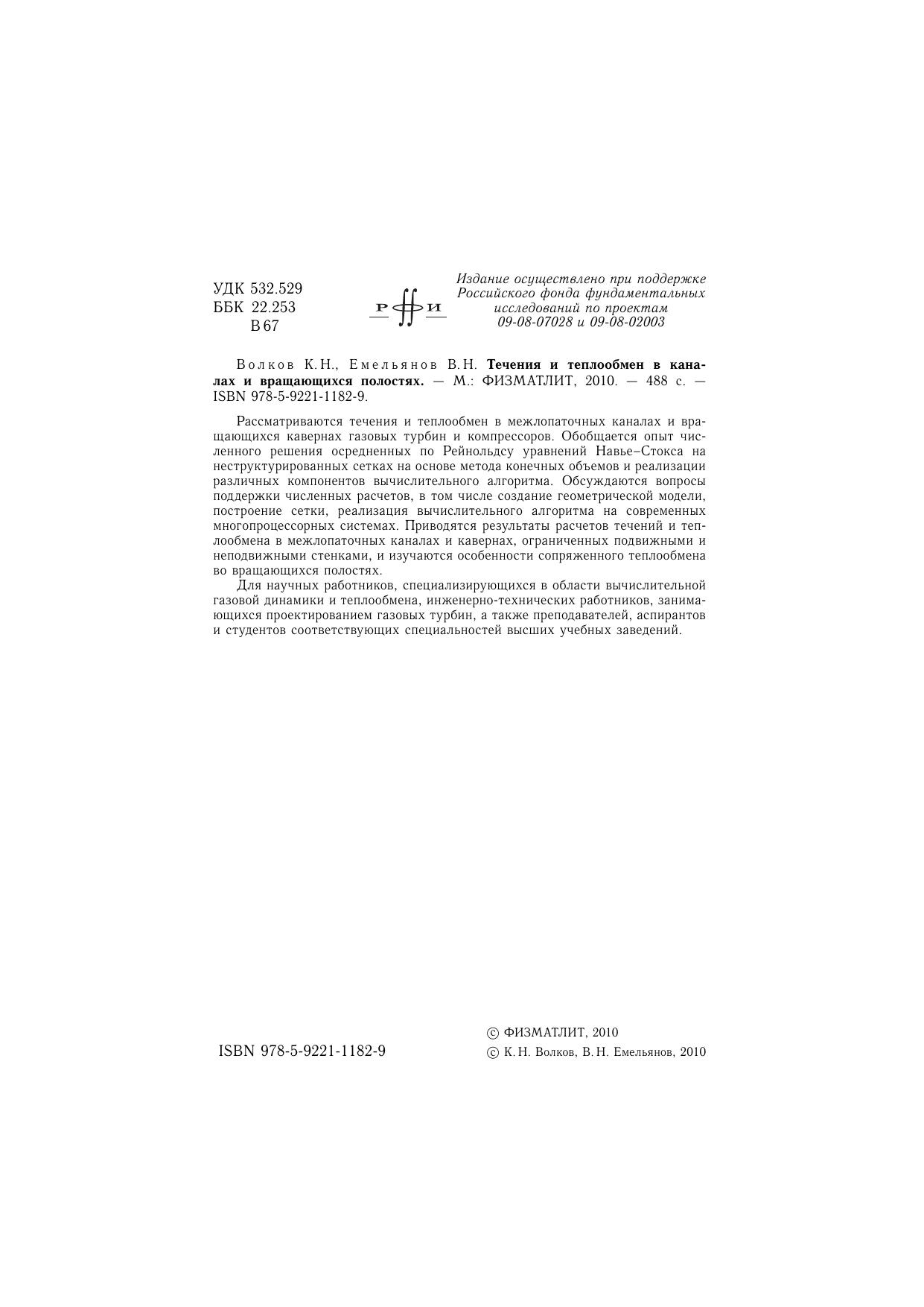 Рассматриваются течения и теплообмен в межлопаточных каналах и вращающихся кавернах газовых турбин и компрессоров. Обобщается опыт численного решения осредненных по Рейнольдсу уравнений Навье-Стокса на неструктурированных сетках на основе метода конечных объемов и реализации различных компонентов вычислительного алгоритма. Обсуждаются вопросы поддержки численных расчетов, в том числе создание геометрической модели, построение сетки, реализация вычислительного алгоритма на современных многопроцессорных системах. Приводятся результаты расчетов течений и теплообмена в межлопаточных каналах и кавернах, ограниченных подвижными и неподвижными стенками, и изучаютсяособенности сопряженного теплообмена во вращающихся полостях. Для научных работников, специализирующихся в области вычислительной газовой динамики и теплообмена, инженерно-техническим работникам, занимающихся проектированием газовых турбин, а также преподавателей, аспирантов и студентов соответствующих специальностей высших учебных заведений.