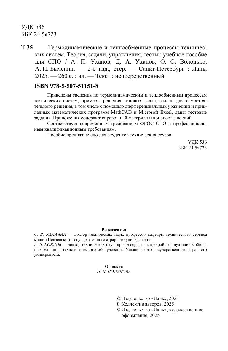Термодинамические и теплообменные процессы технических систем. Теория, задачи, упражнения, тесты