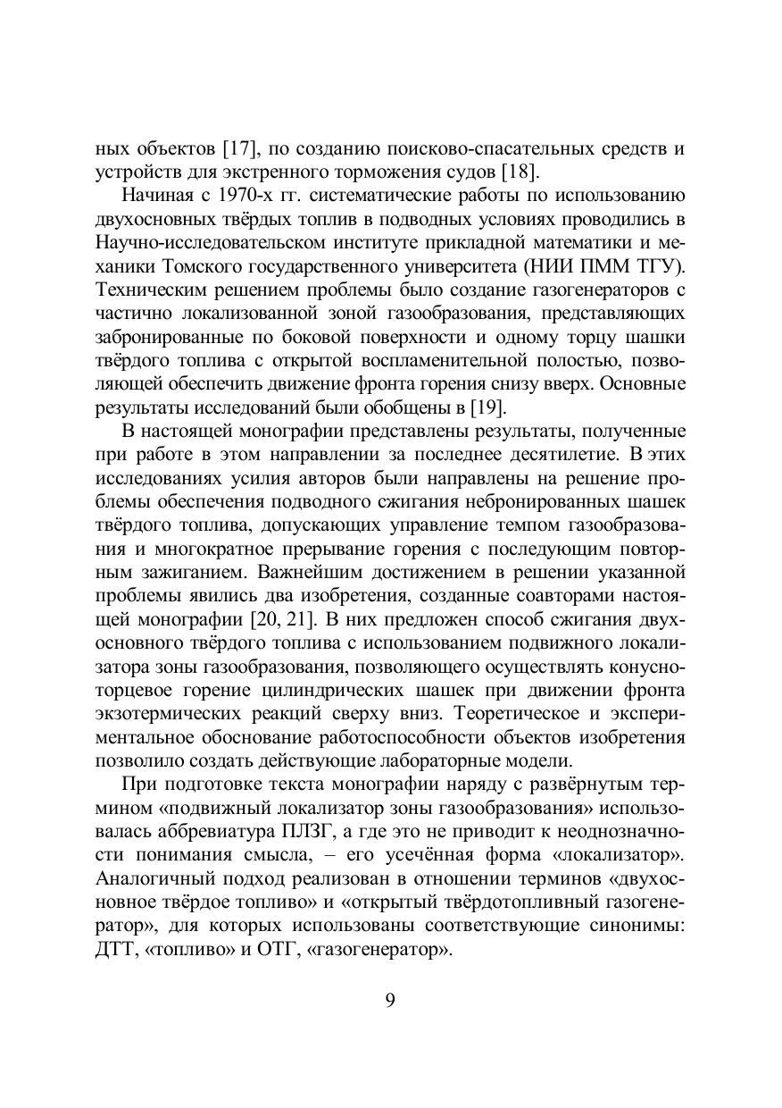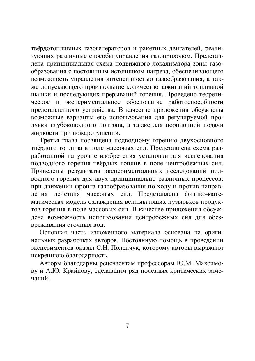 В монографии изложены основные результаты исследований, полу ченные за последнее десятилетие в рамках нового научно-технического направления по зажиганию и горению конденсированных веществ в вод ной среде. Представлено теоретическое и экспериментальное обоснование возможности подводного зажигания и горения двухосновных твёрдых топлив с использованием подвижного локализатора зоны газообразования. Также представлены результаты экспериментов по исследованию подвод ного горения указанных топлив в поле центробежных сил. Обсуждены перспективы возможного практического использования полученных ре зультатов. Для научных работников, студентов и аспирантов, специализирующихся в области применения унитарных твёрдых топлив в энергетических устройствах для подводного использования.