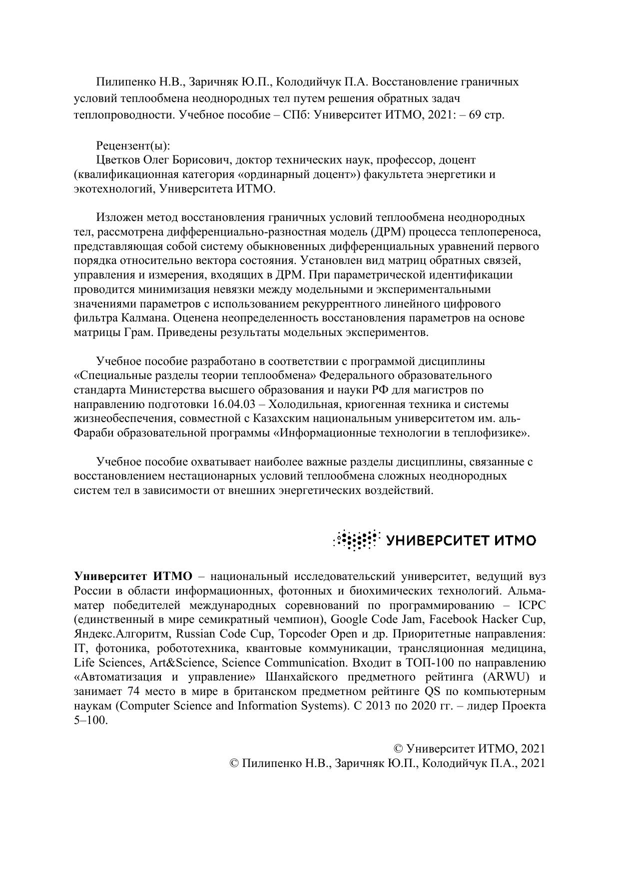 Учебное пособие охватывает наиболее важные разделы дисциплины, связанные с восстановлением нестационарных условий теплообмена сложных неоднородных систем тел в зависимости от внешних энергетических воздействий.