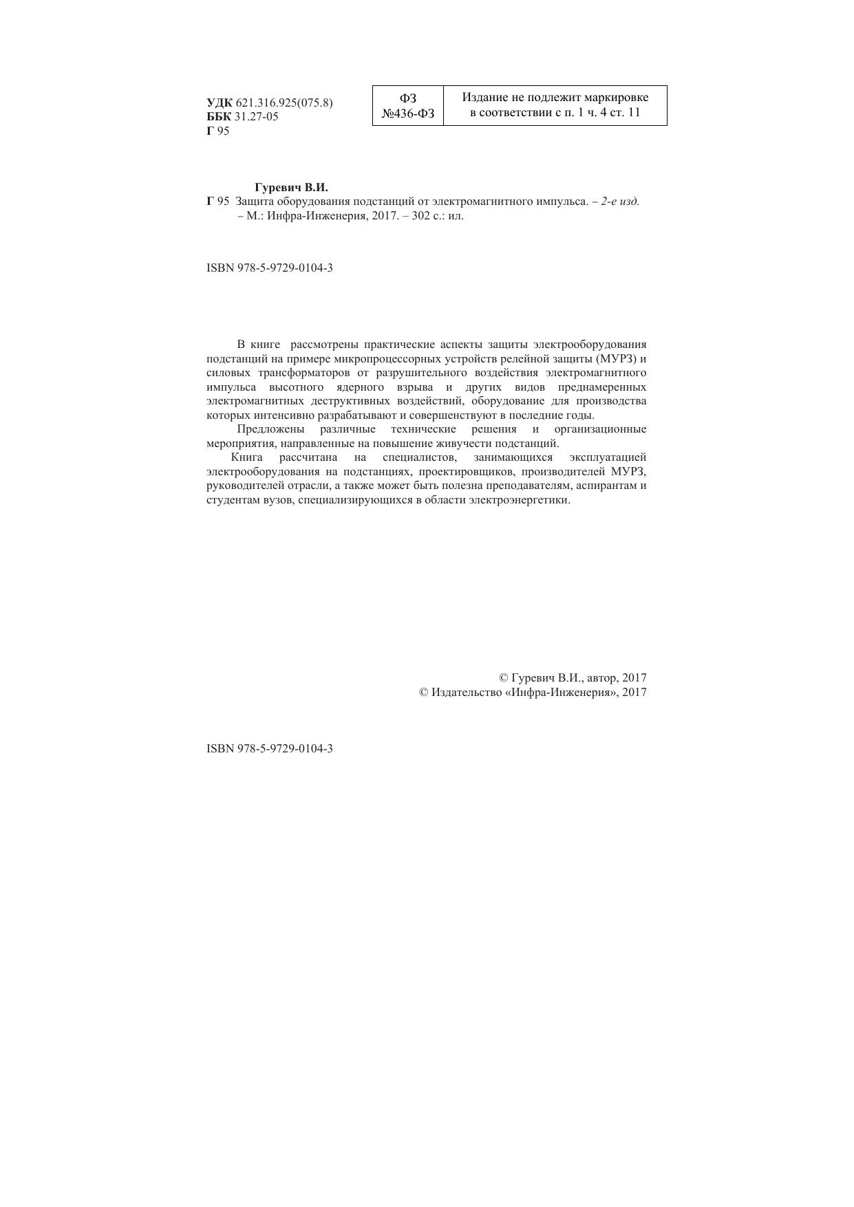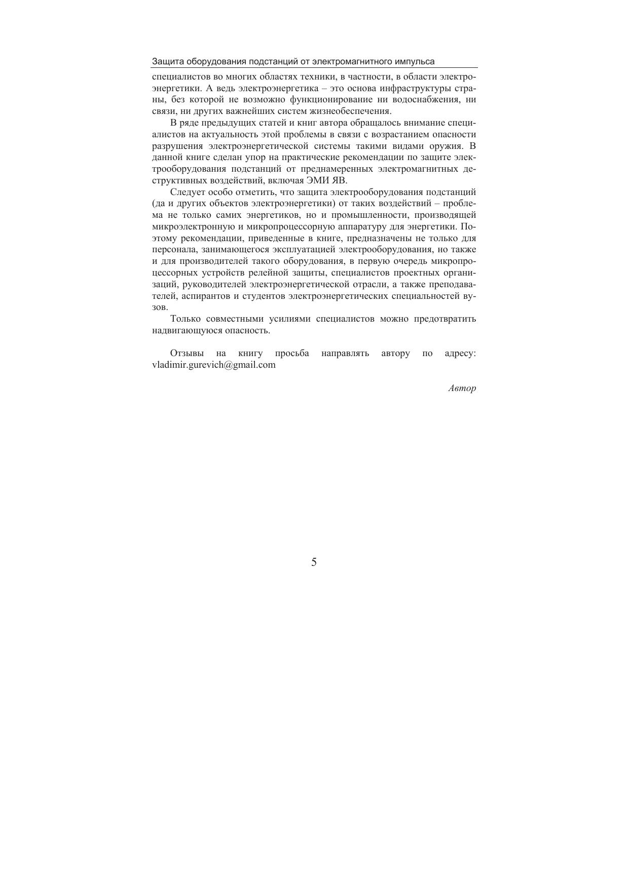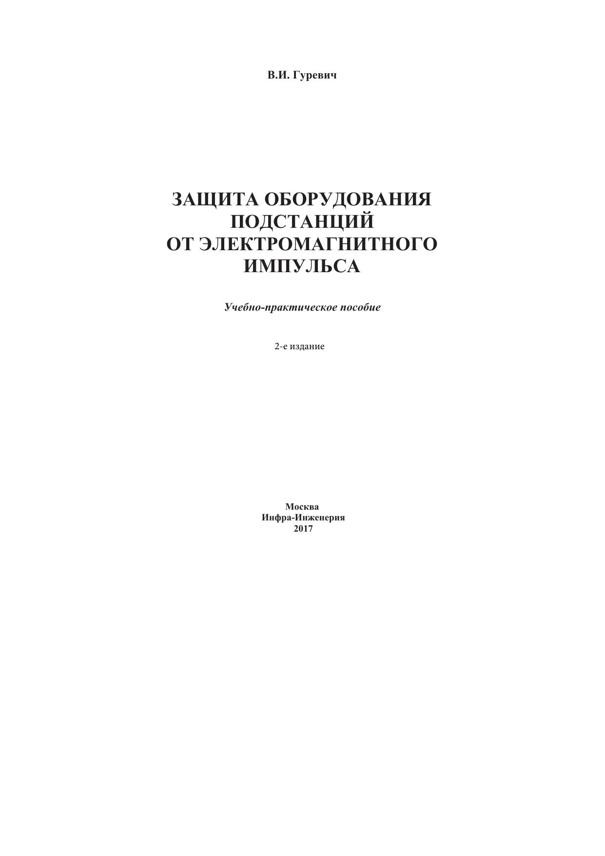 В книге рассмотрены практические аспекты защиты электрооборудования подстанций на примере микропроцессорных устройств релейной защиты (МУРЗ) и силовых трансформаторов от разрушительного воздействия электромагнитного импульса высотного ядерного взрыва и других видов преднамеренных электромагнитных деструктивных воздействий, оборудование для производства которых интенсивно разрабатывают и совершенствуют в последние годы. Предложены различные технические решения и организационные мероприятия, направленные на повышение живучести подстанций.