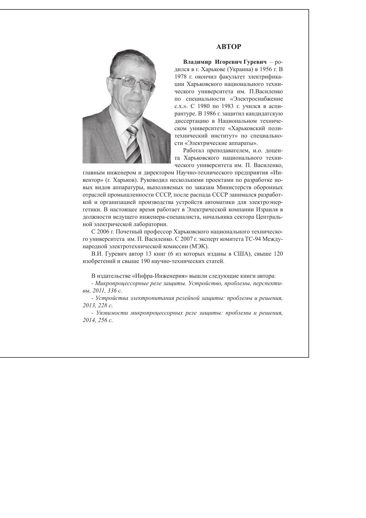 Книга рассчитана на специалистов, занимающихся эксплуатацией электрооборудования на подстанциях, проектировщиков, производителей МУРЗ, руководителей отрасли, а также может быть полезна преподавателям, аспирантам и студентам вузов, специализирующихся в области электроэнергетики.